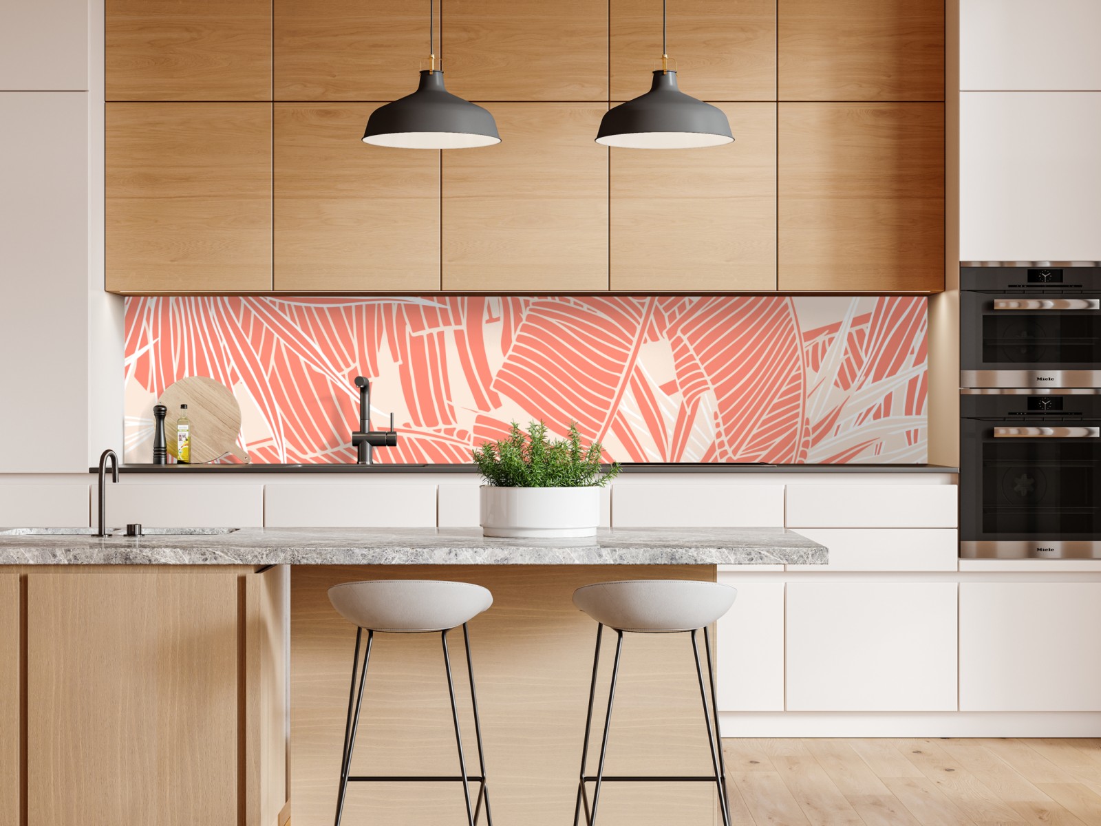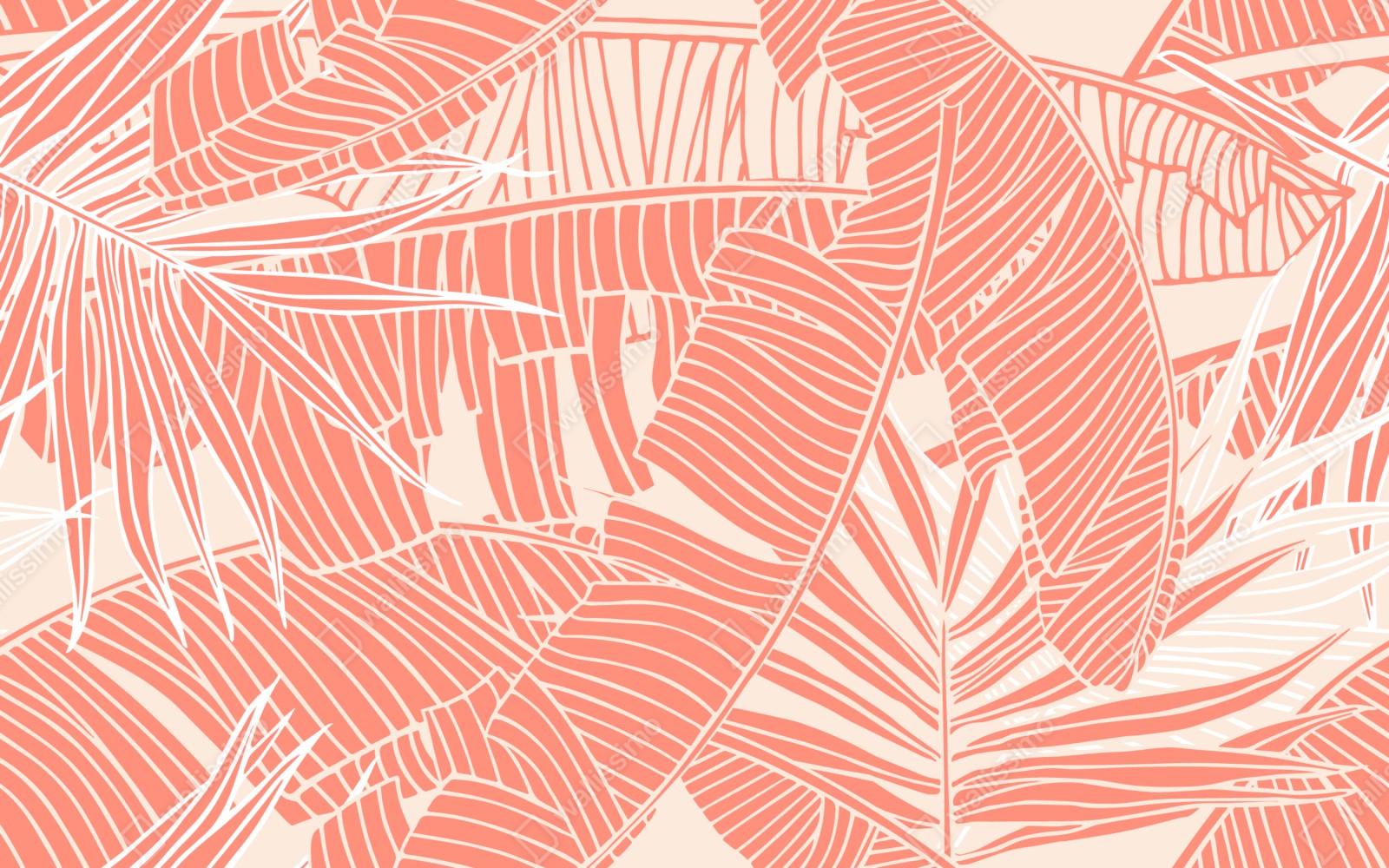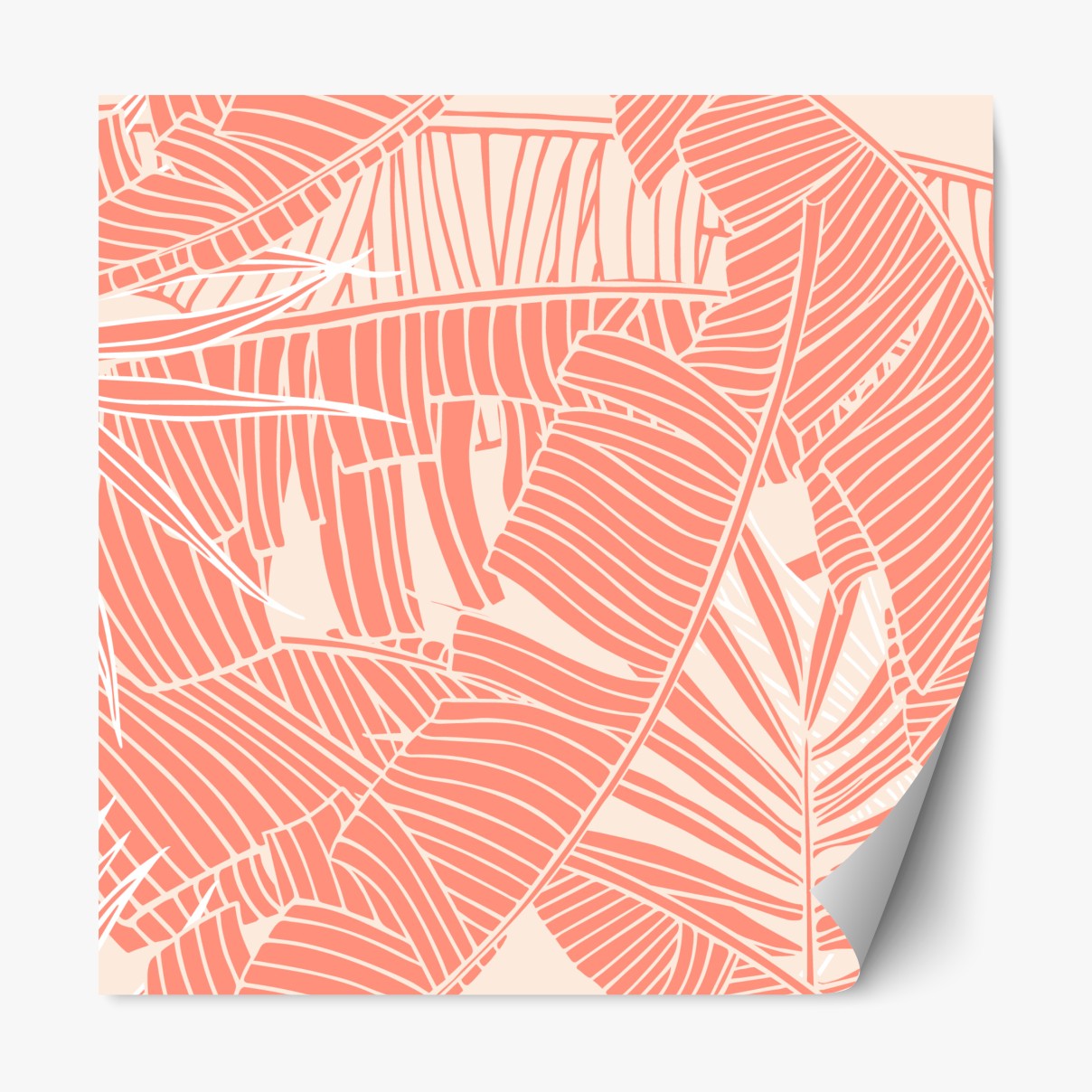 Naklejka repozycjonowalna Koralowy wzór tropikalnych liści