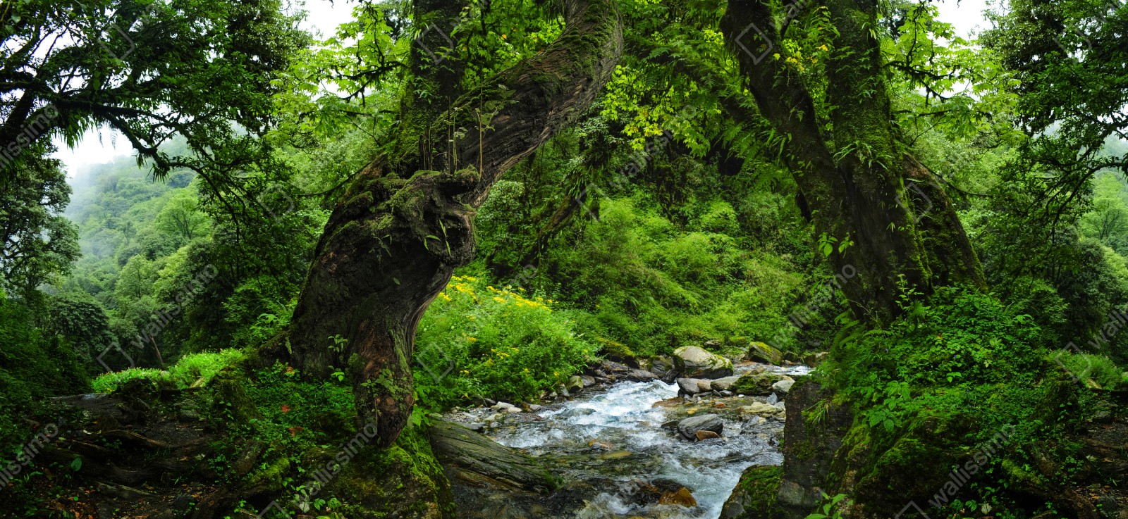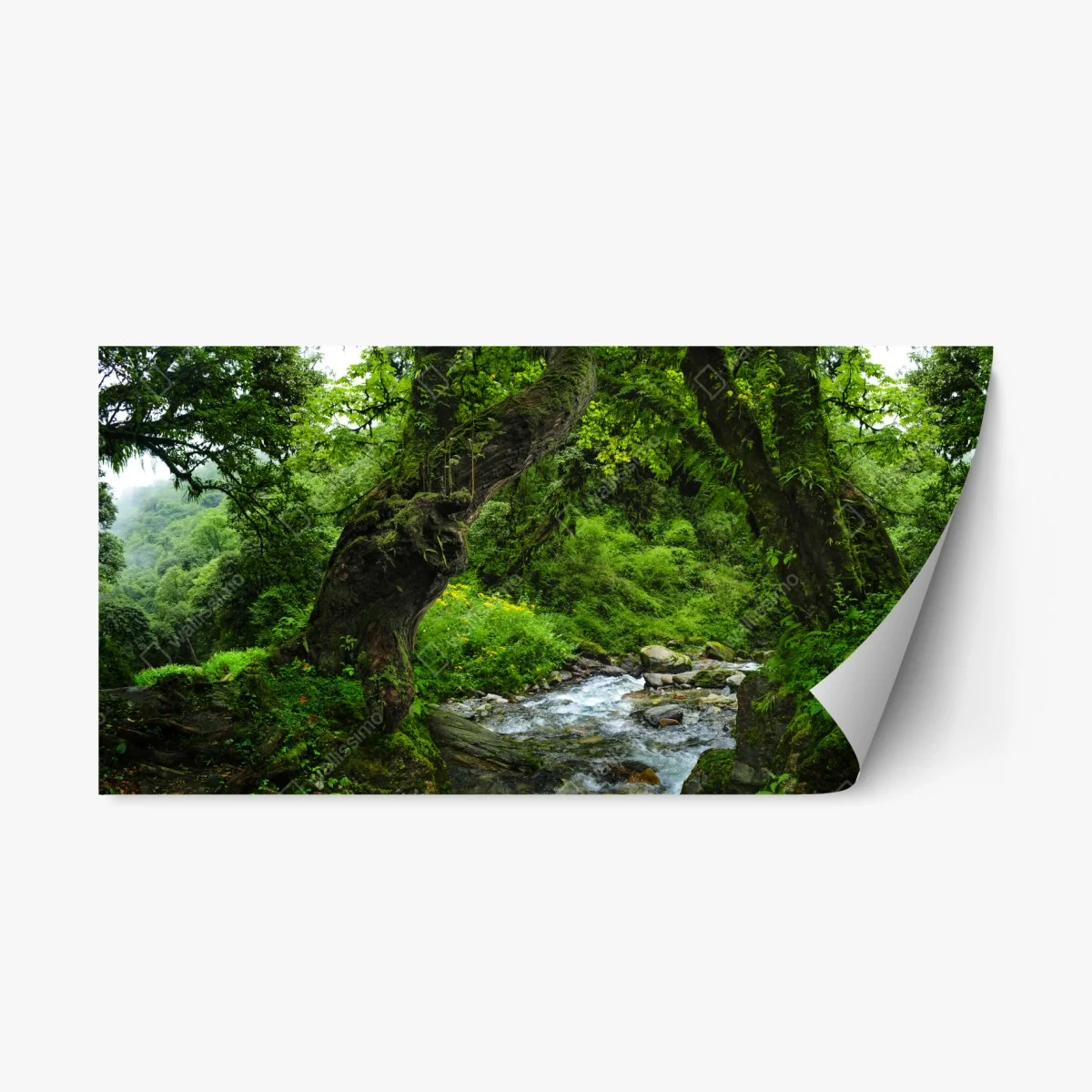 Naklejka repozycjonowalna Mszysty leśny strumień panorama