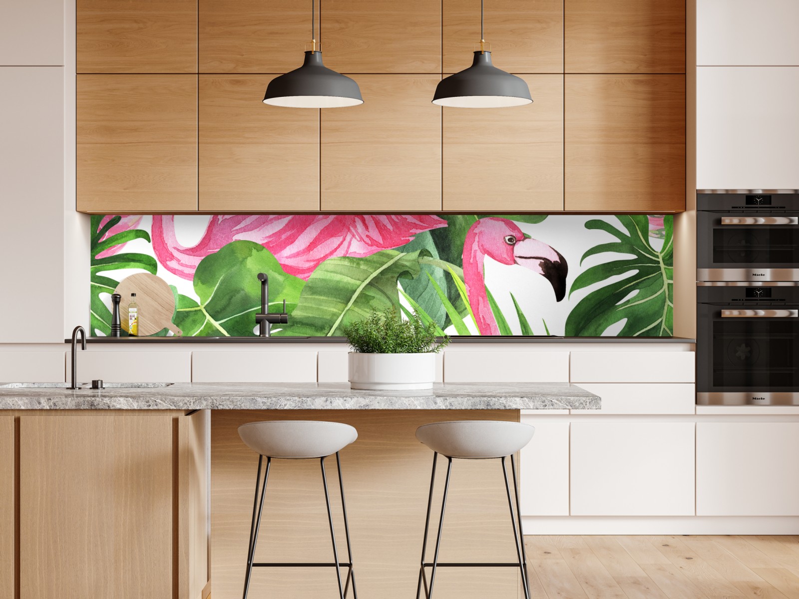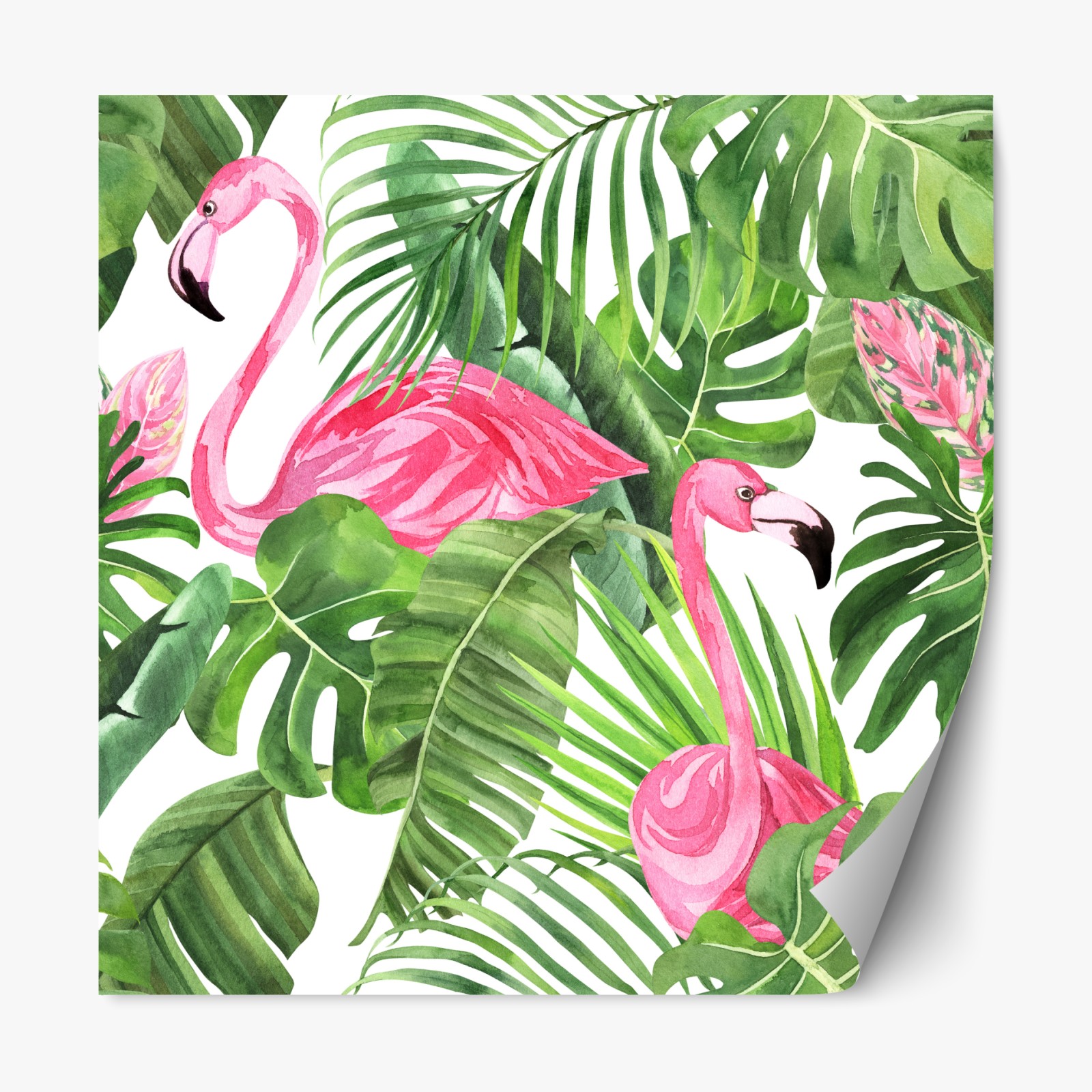 Naklejka repozycjonowalna Różowe flamingi tropikalny wzór akwarelowy