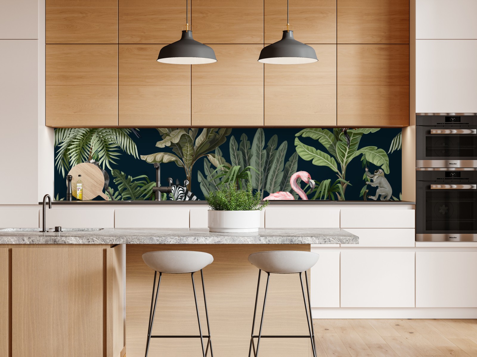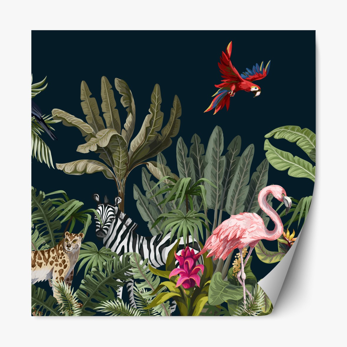 Naklejka repozycjonowalna Tropikalna scena dżungli z dziką fauną