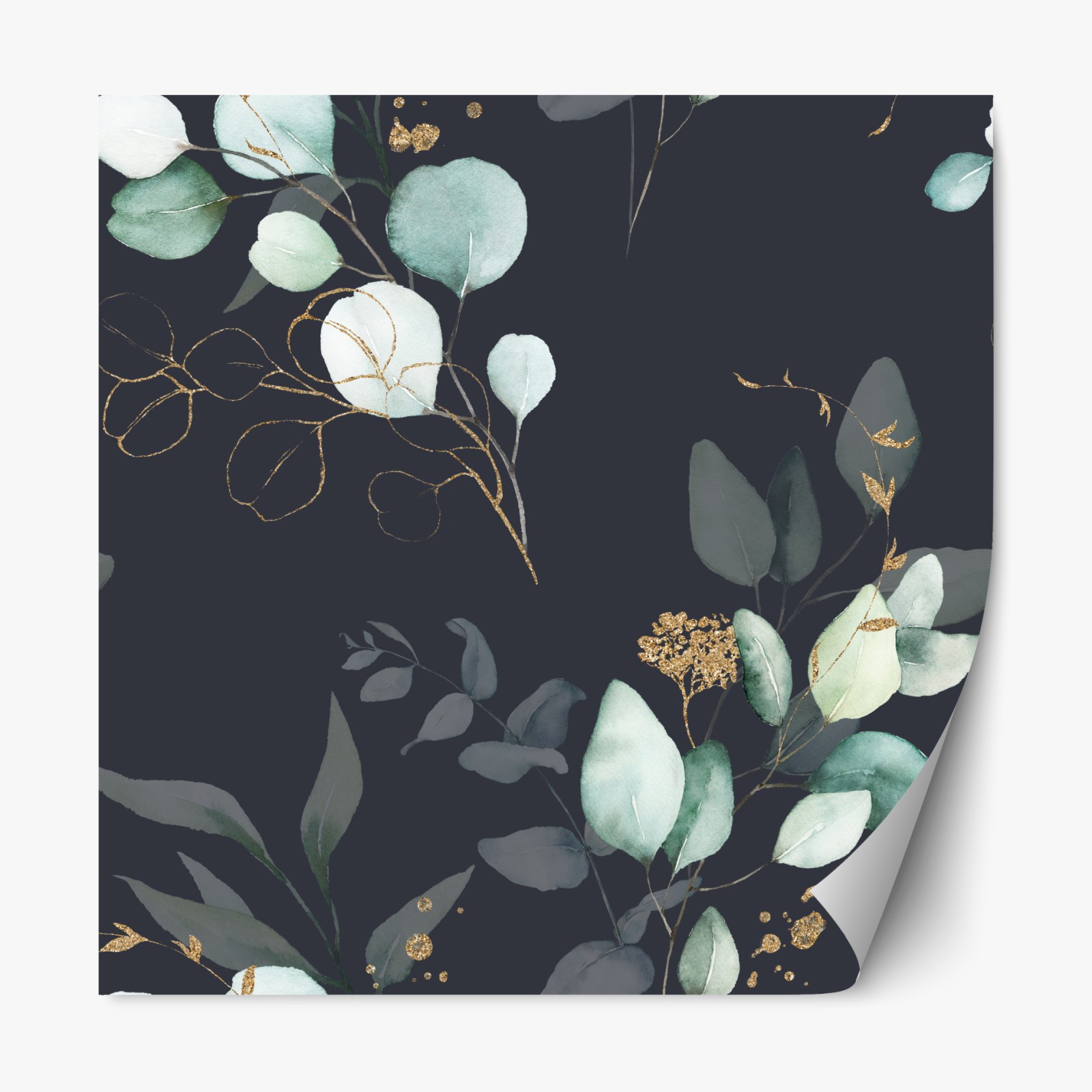 Naklejka repozycjonowalna Eukaliptusowe liście akwarelowe na ciemnym tle