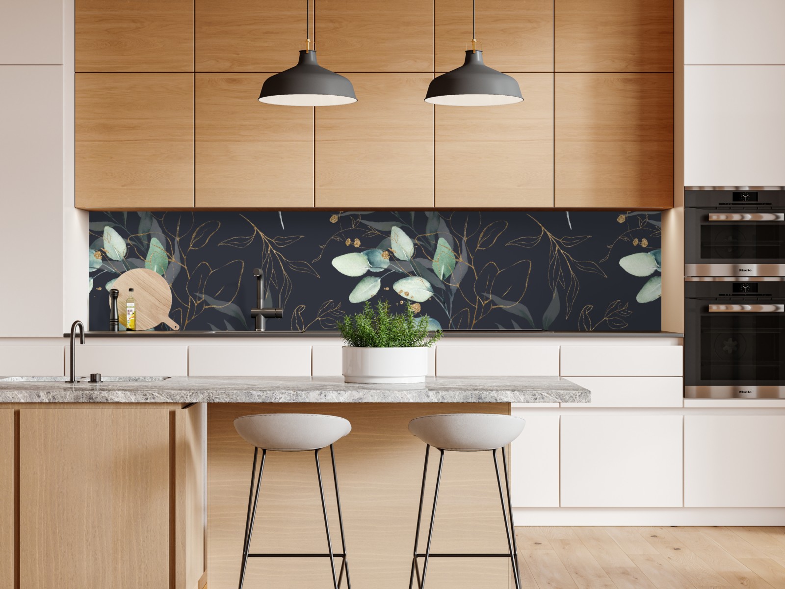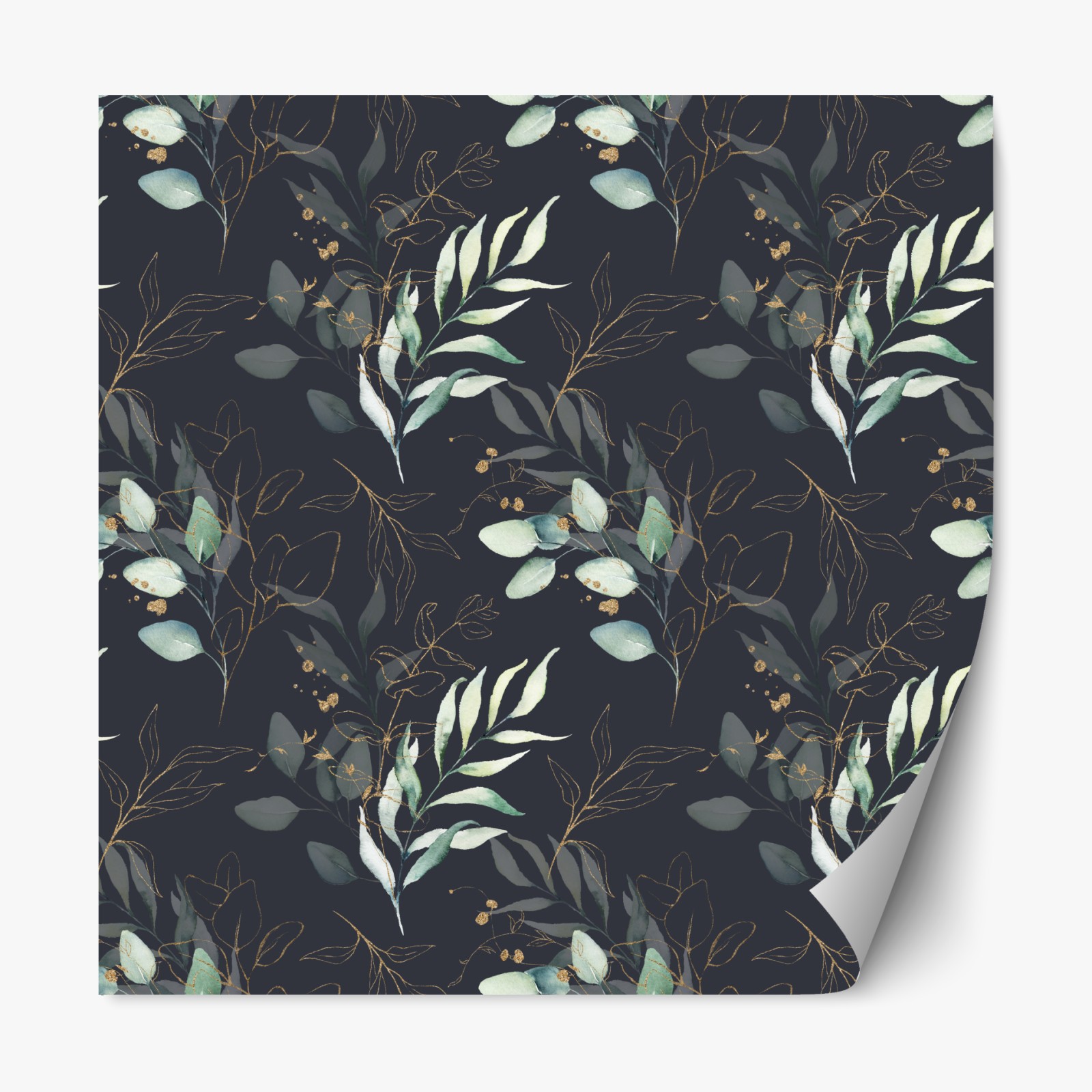 Naklejka repozycjonowalna Akwarelowe liście eukaliptusa na ciemnym tle