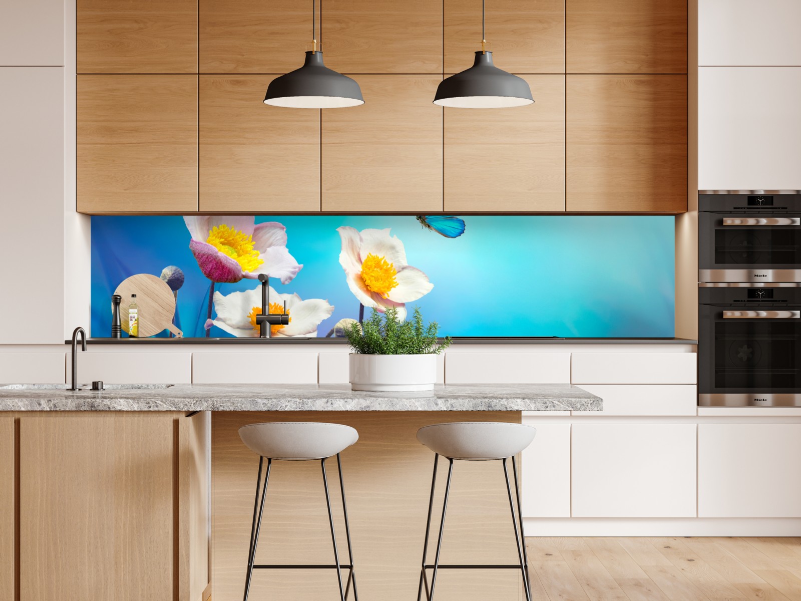 Naklejka repozycjonowalna Delikatne różowe anemony i niebieski motyl
