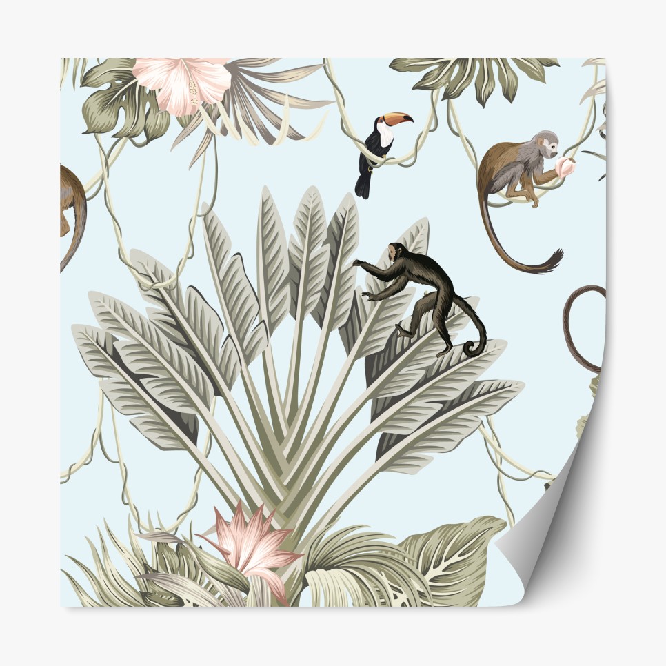 Naklejka repozycjonowalna Pastelowy wzór dżungli z zwierzętami