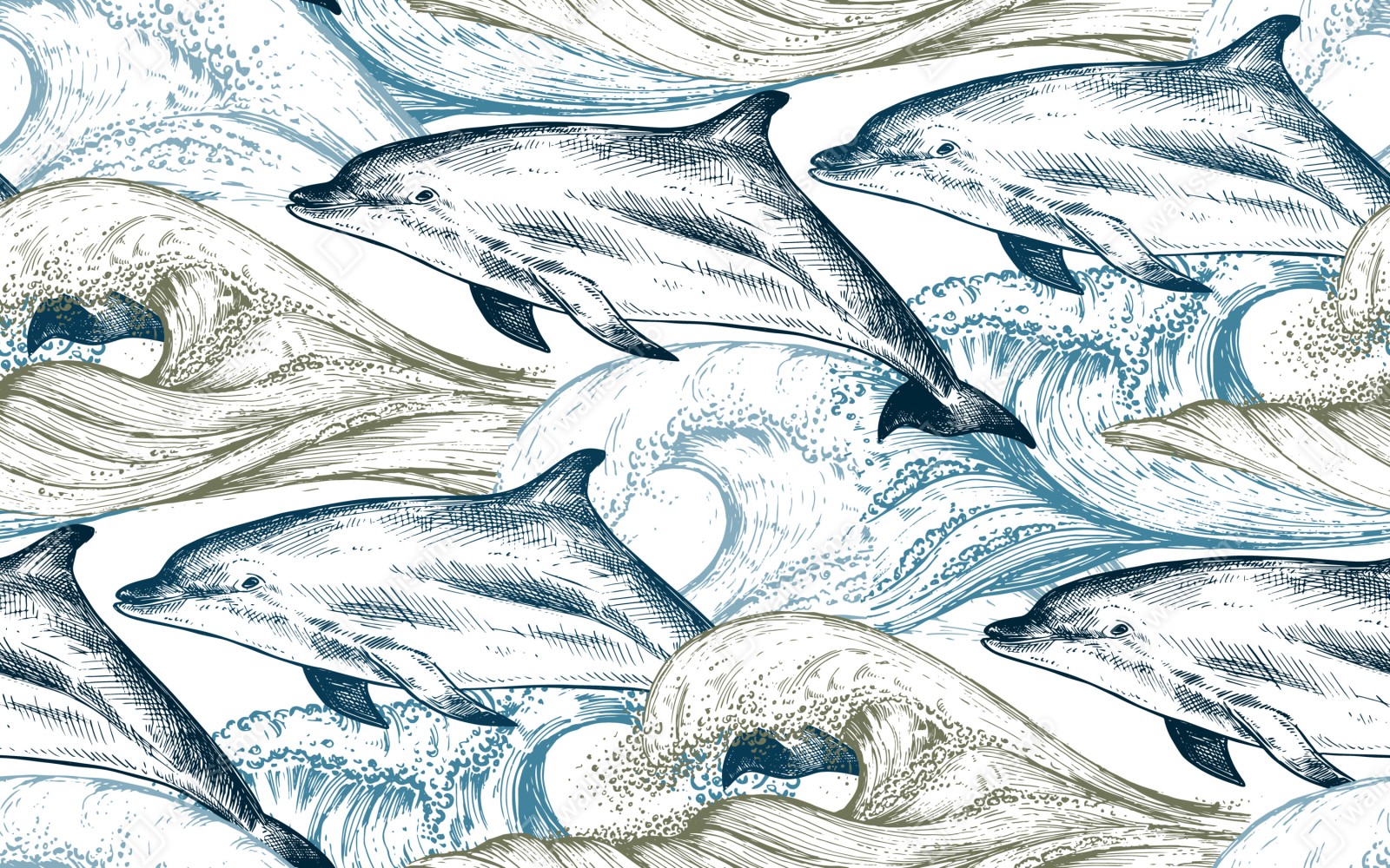 Naklejka repozycjonowalna Vintage delfiny oceaniczna ilustracja
