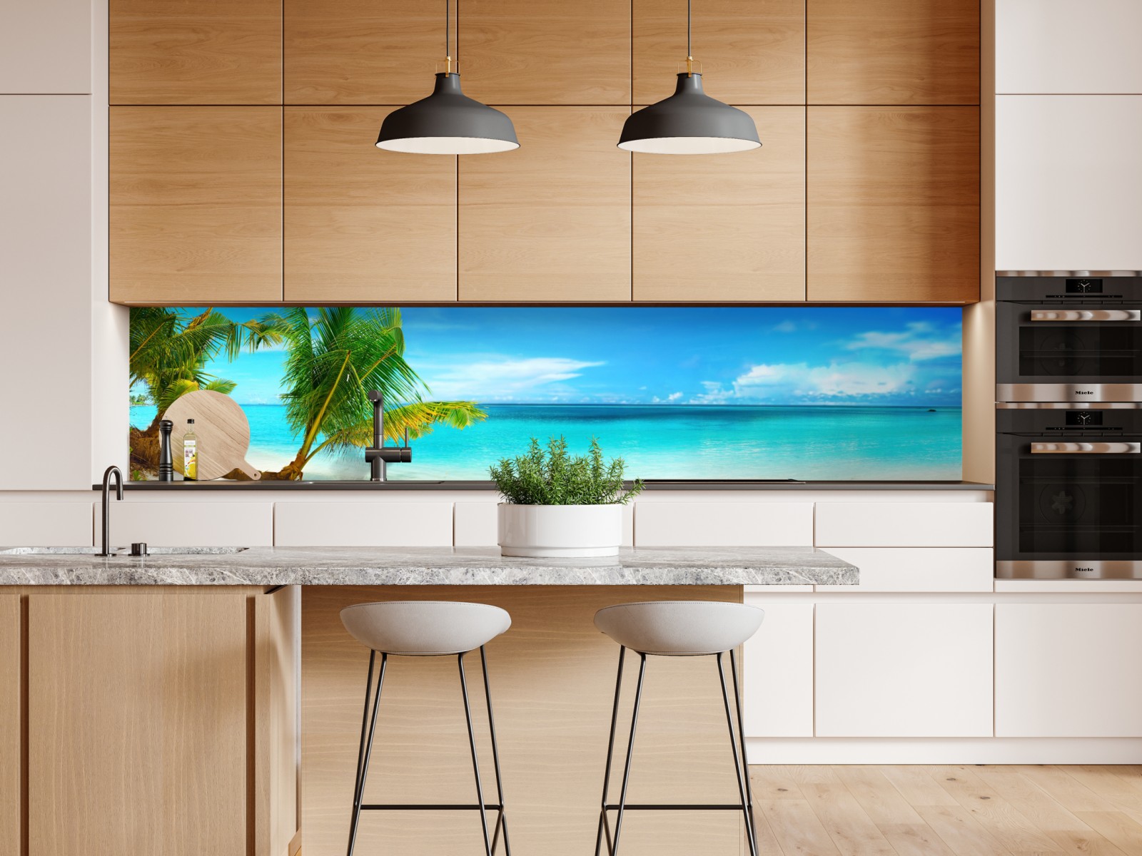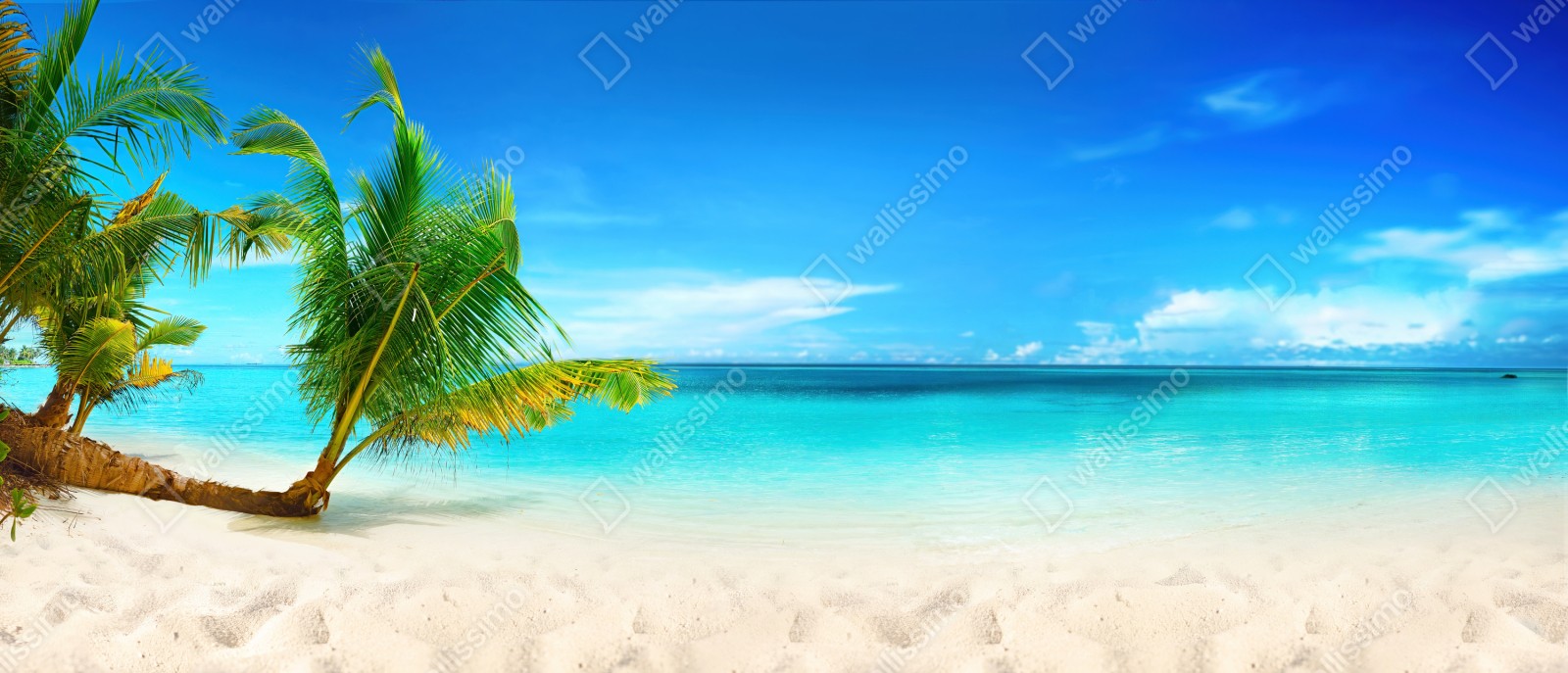 Naklejka repozycjonowalna Malediwy turkusowa plaża panorama