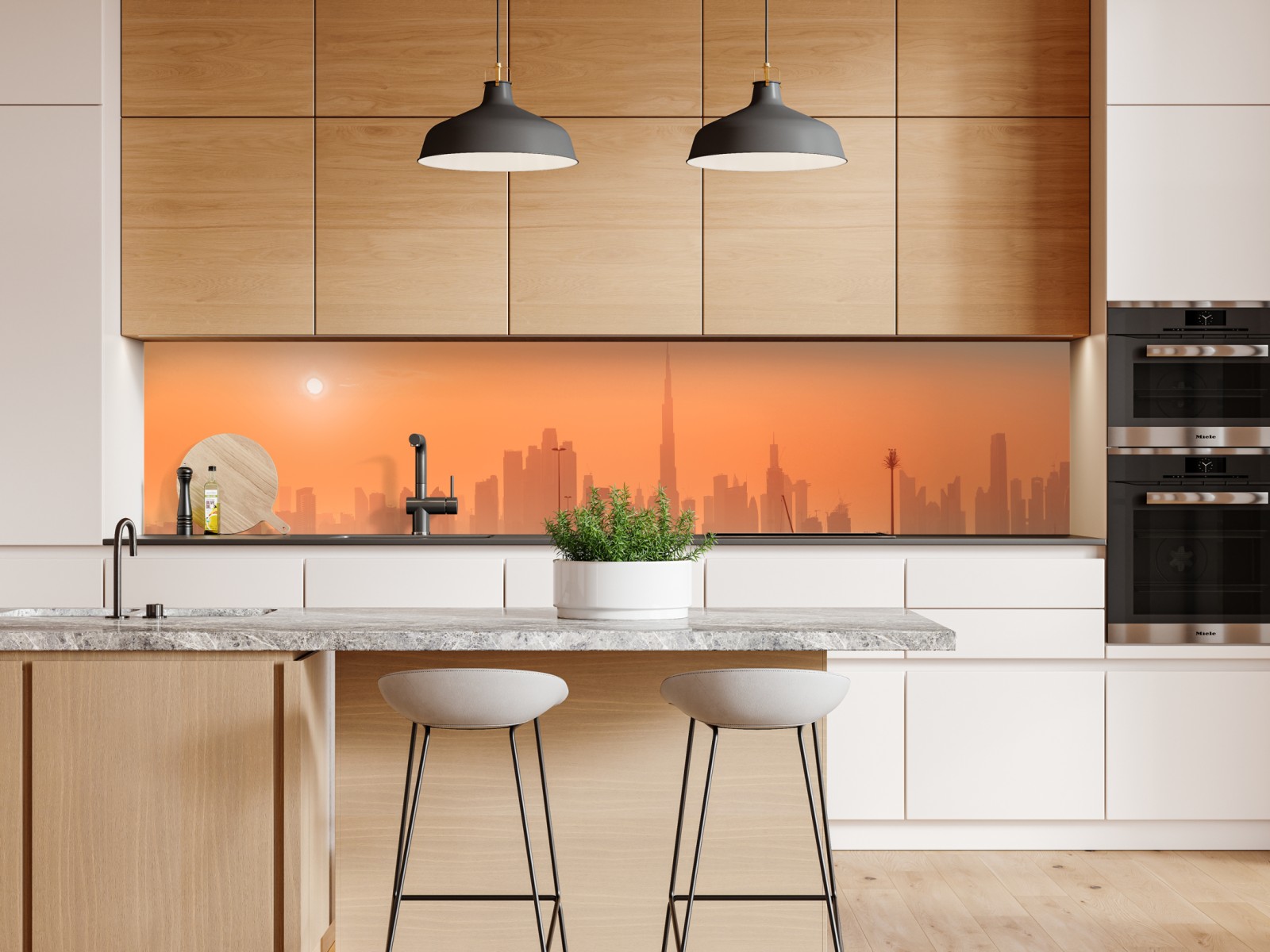 Naklejka repozycjonowalna Dubaj panorama o wschodzie słońca