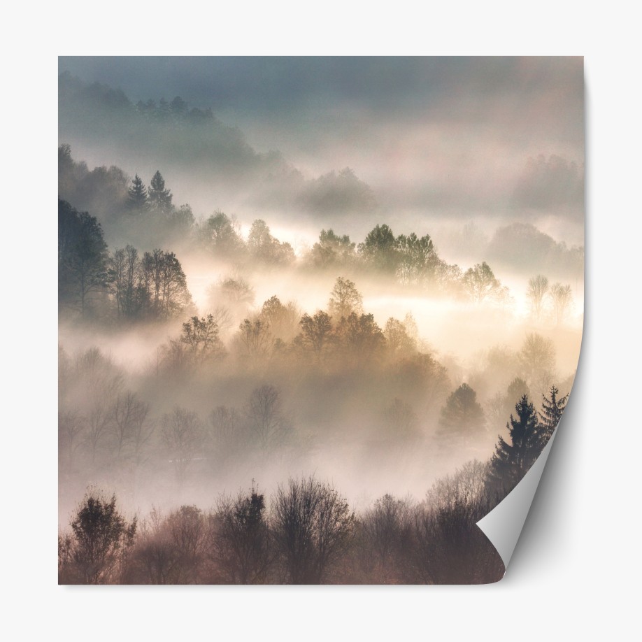 Naklejka repozycjonowalna Mglisty las o świcie