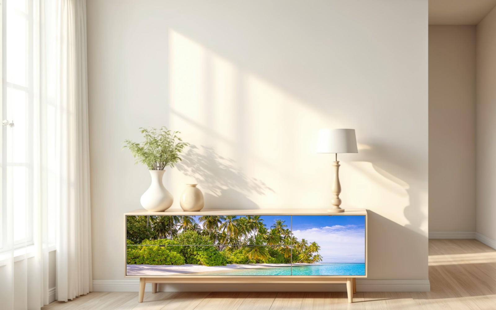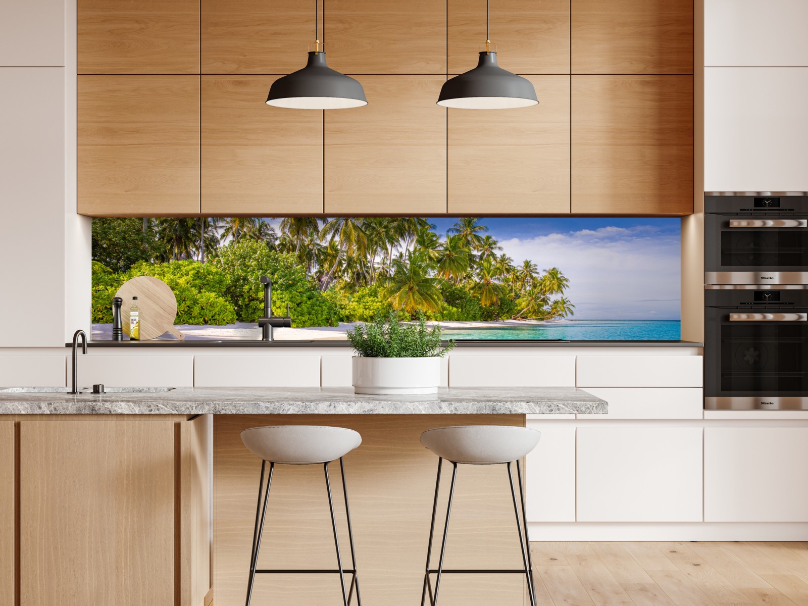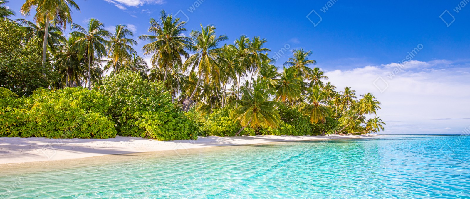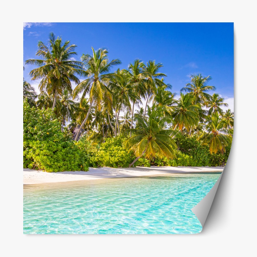 Naklejka repozycjonowalna Tropikalna plaża z palmami
