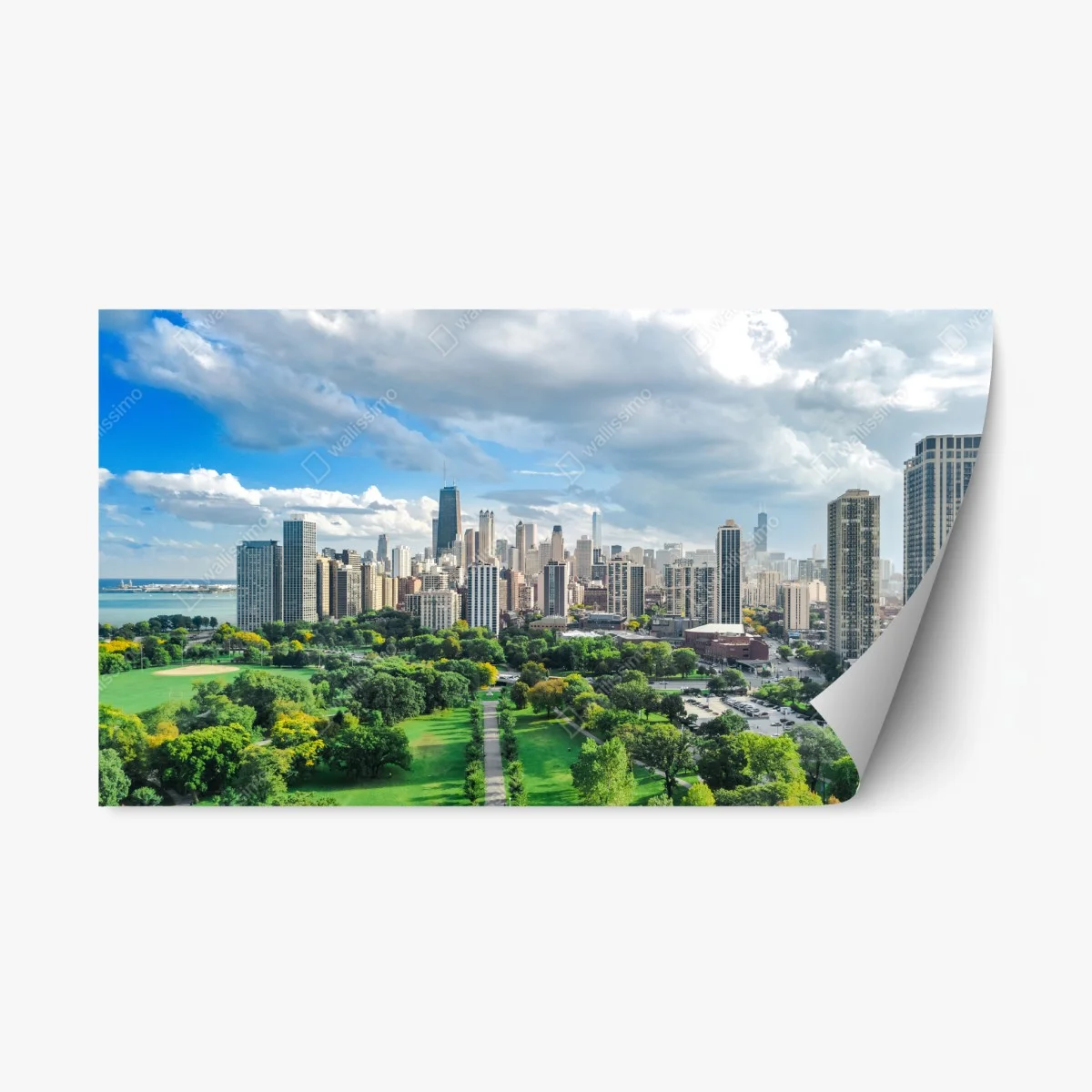 Naklejka repozycjonowalna Miejska panorama nad zielonym parkiem
