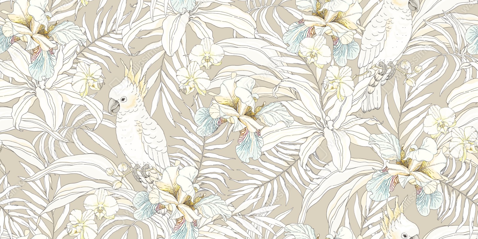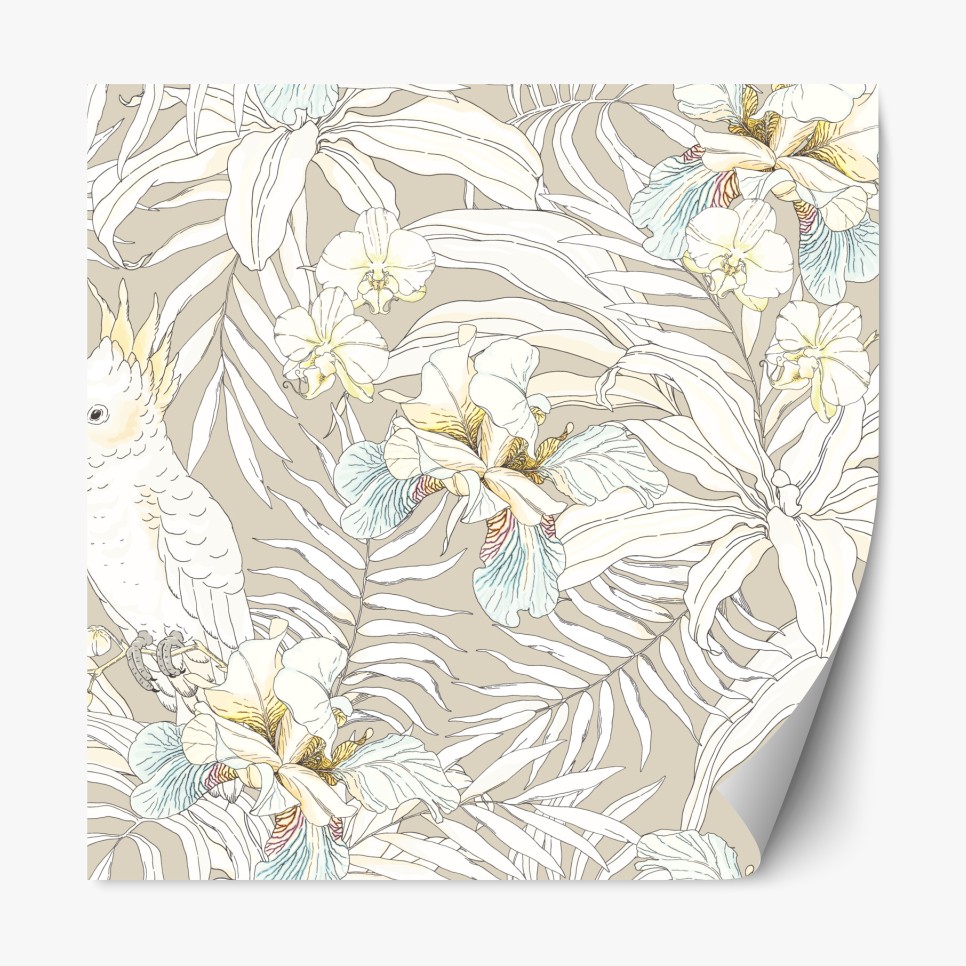 Naklejka repozycjonowalna Tropikalny wzór z kakadu i kwiatami