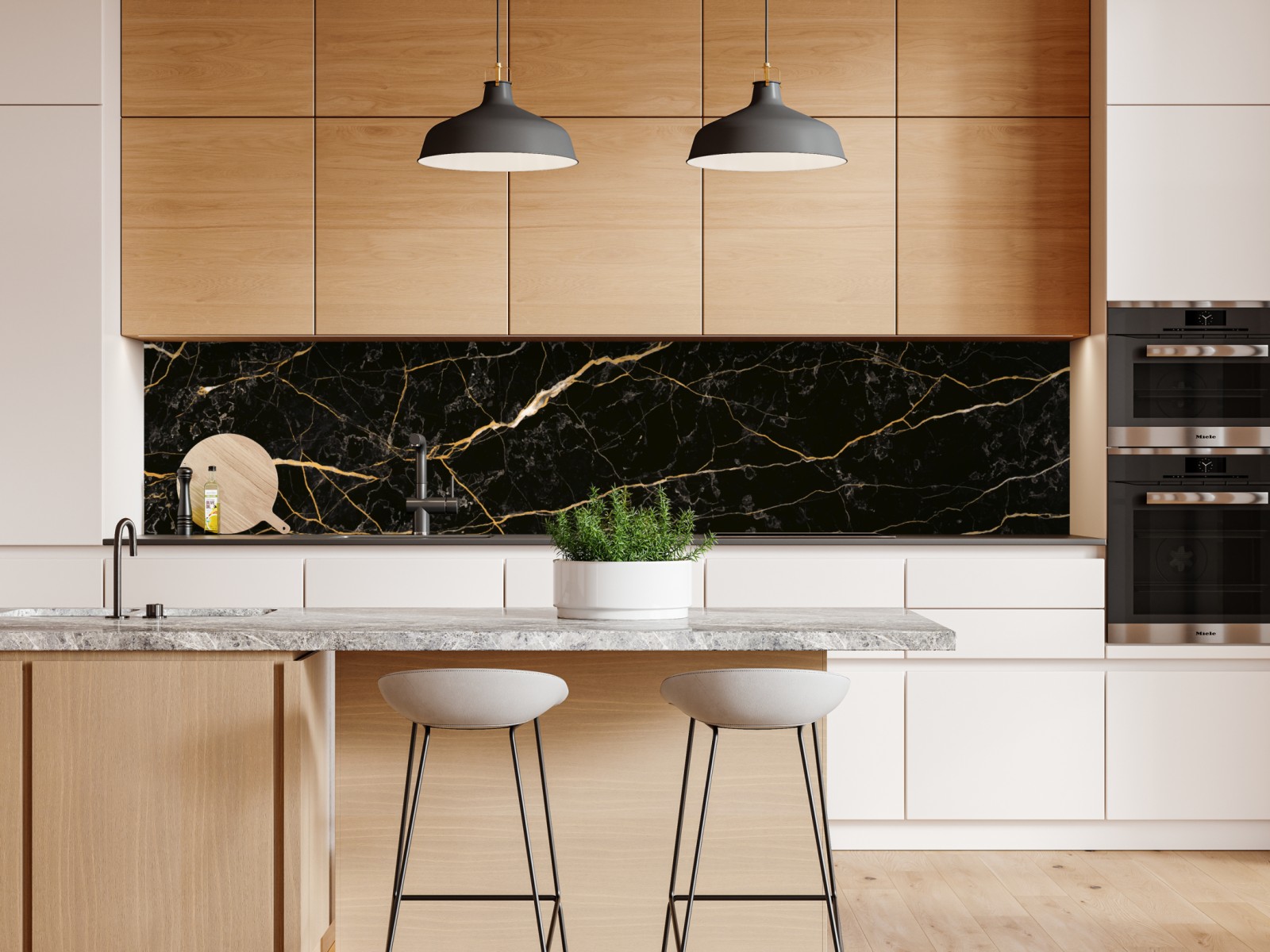 Naklejka repozycjonowalna Czarny marmur ze złotymi żyłami
