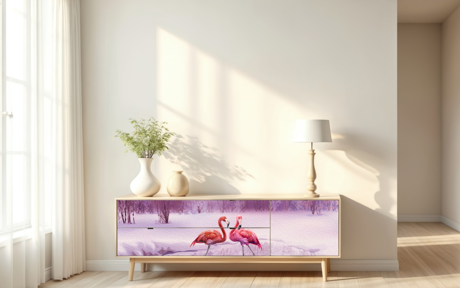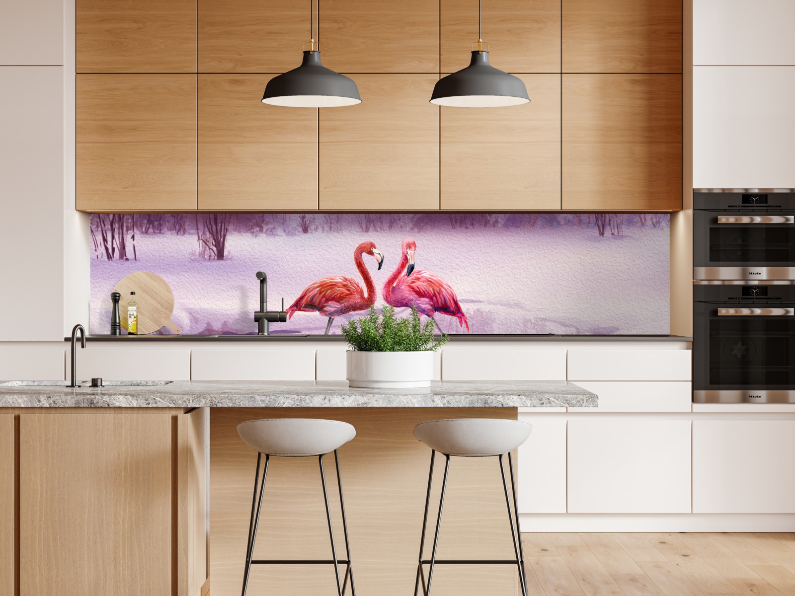 Naklejka repozycjonowalna Pastelowe flamingi na zimowym jeziorze