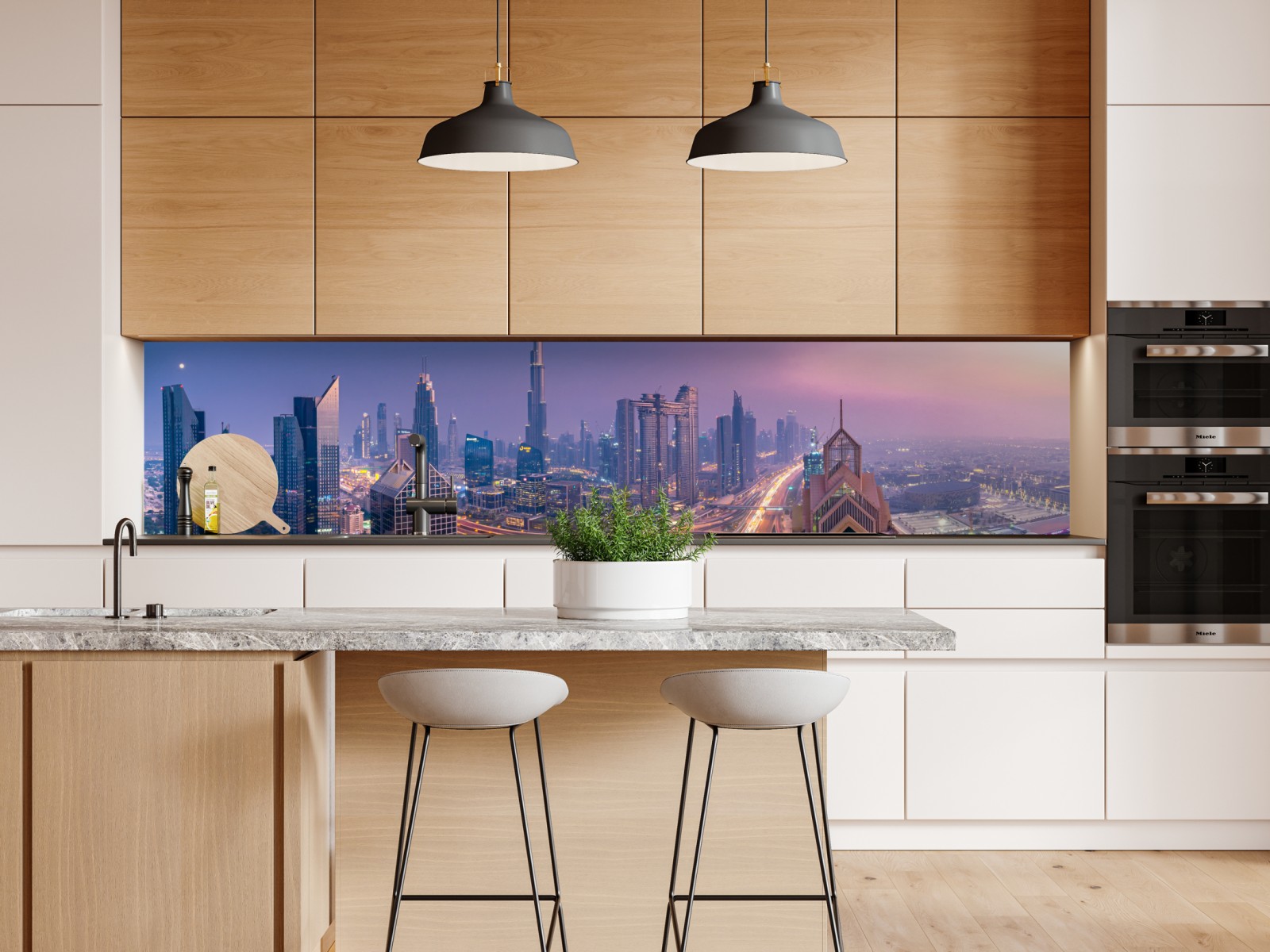 Naklejka repozycjonowalna Panoramiczny widok Dubaju o zmierzchu