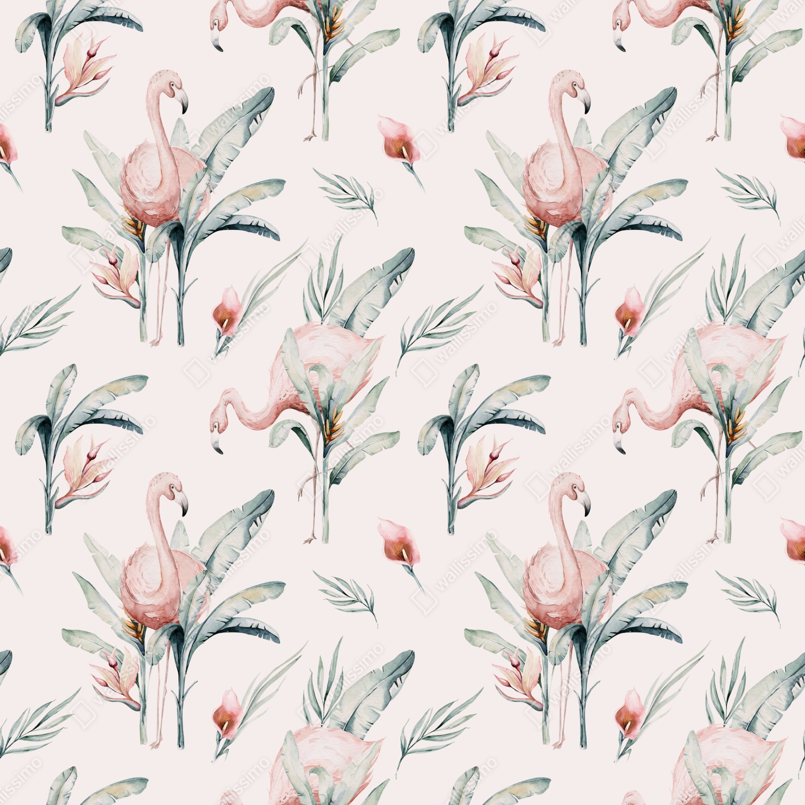 Naklejka repozycjonowalna Akwarelowy wzór z flamingami