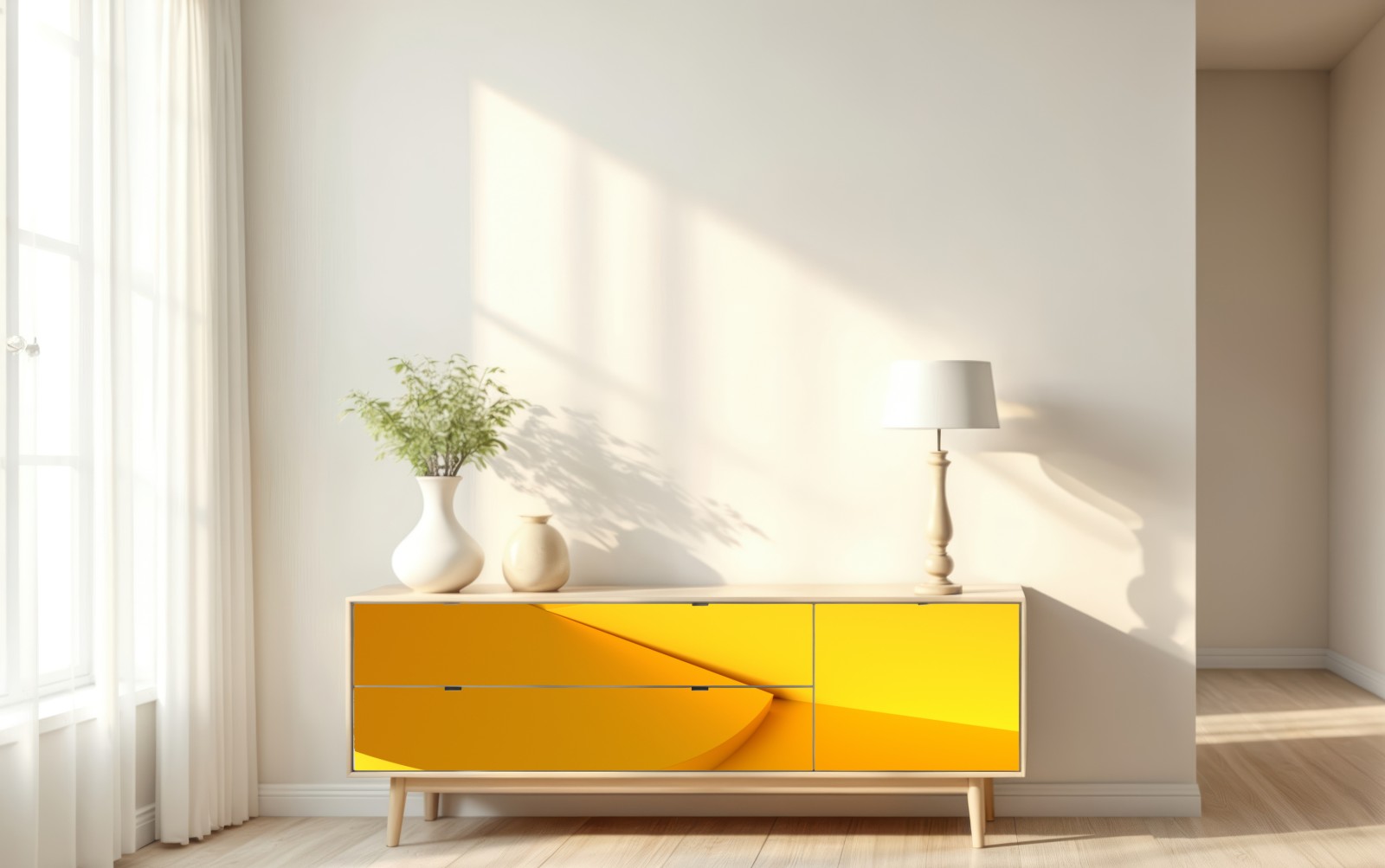 Naklejka repozycjonowalna Żółta geometryczna abstrakcja 3d