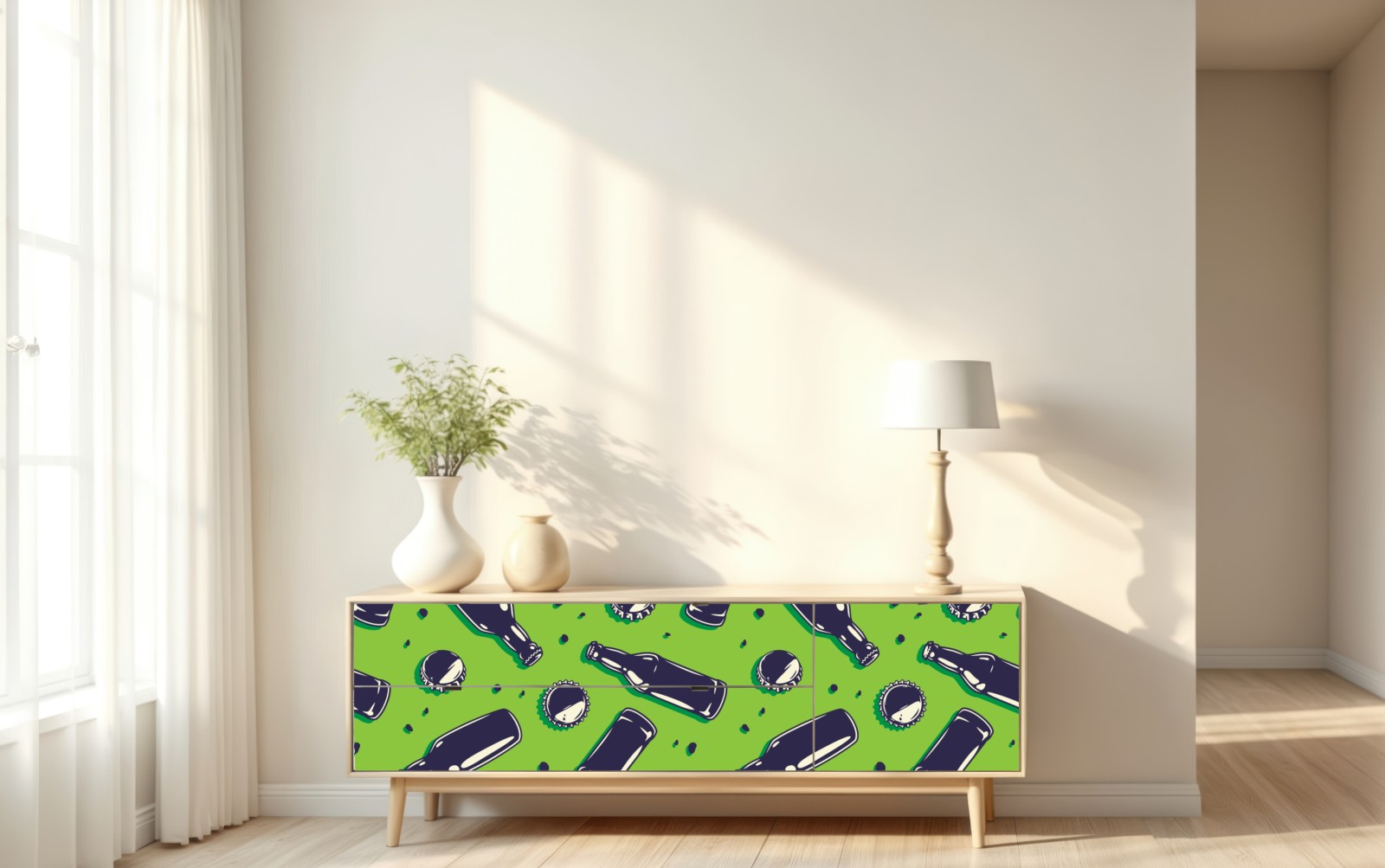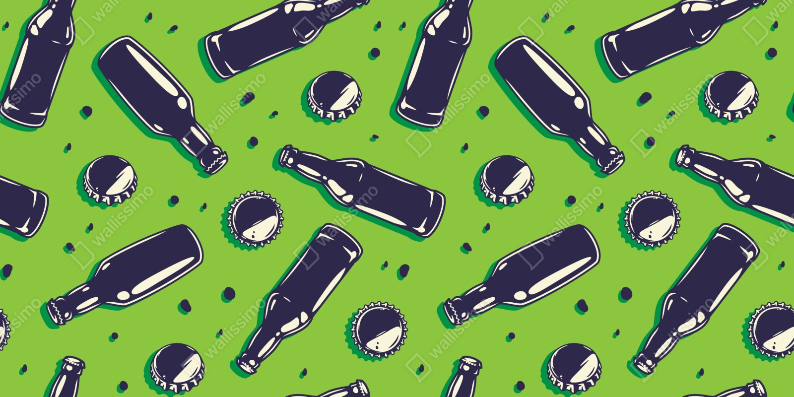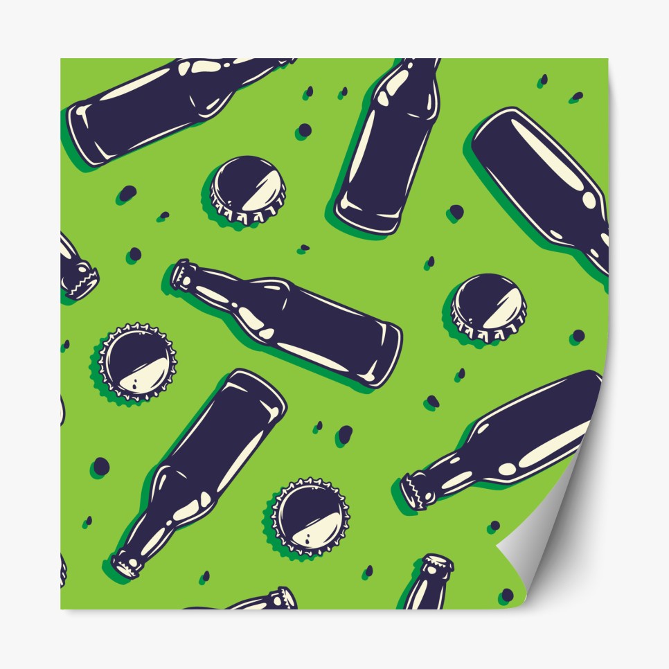 Naklejka repozycjonowalna Wzór butelek piwa w stylu pop art na zielonym tle