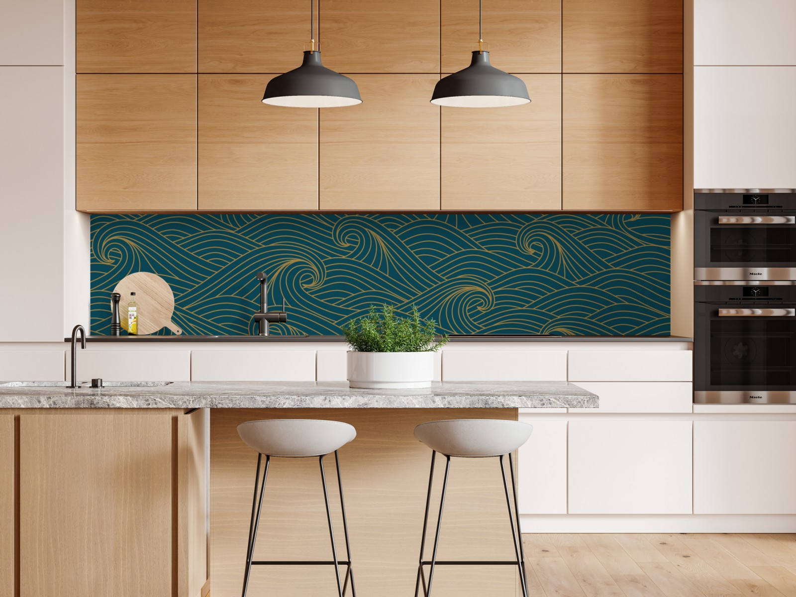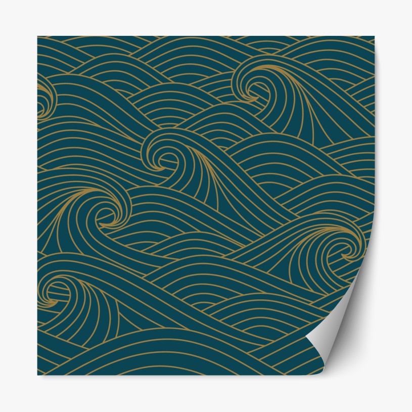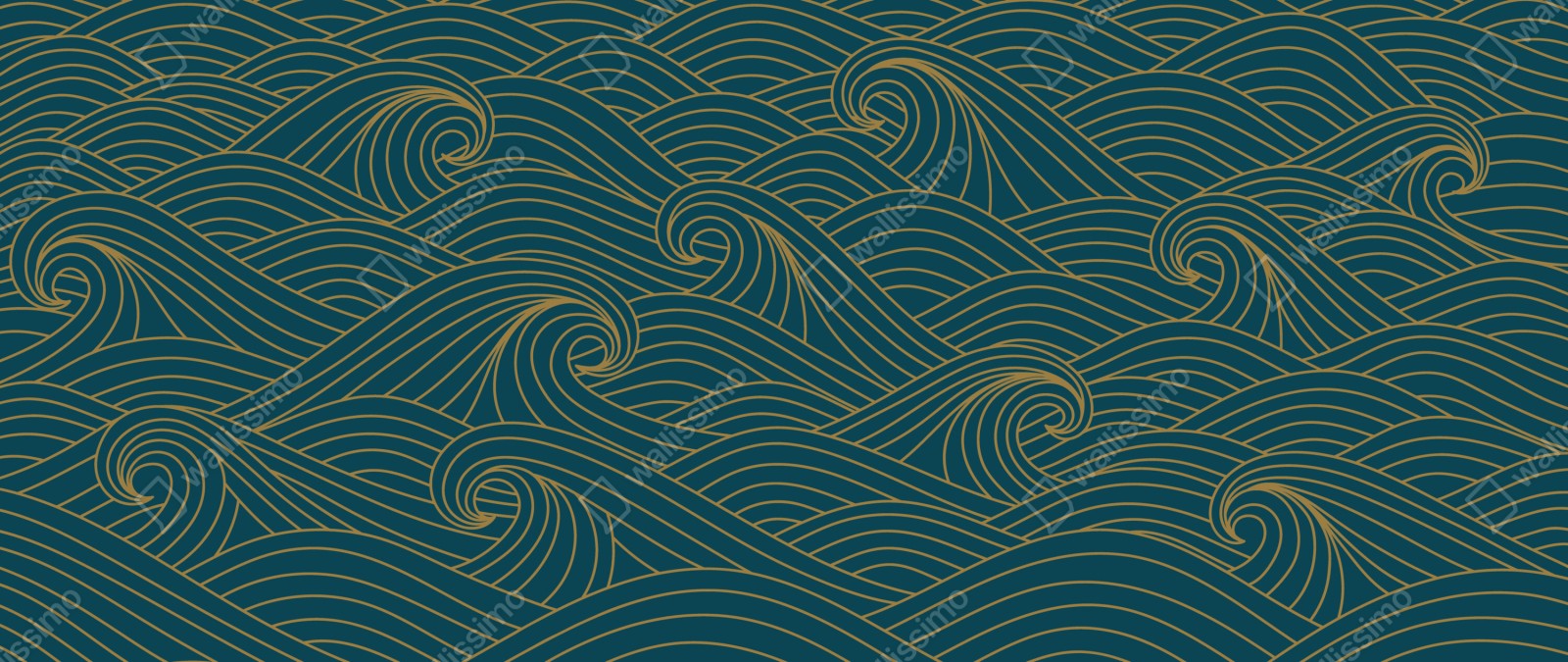 Naklejka repozycjonowalna Turkusowy wzór fal ze złotymi liniami
