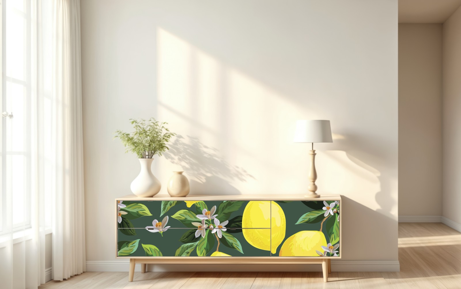 Naklejka repozycjonowalna Botaniczny wzór z cytrynami