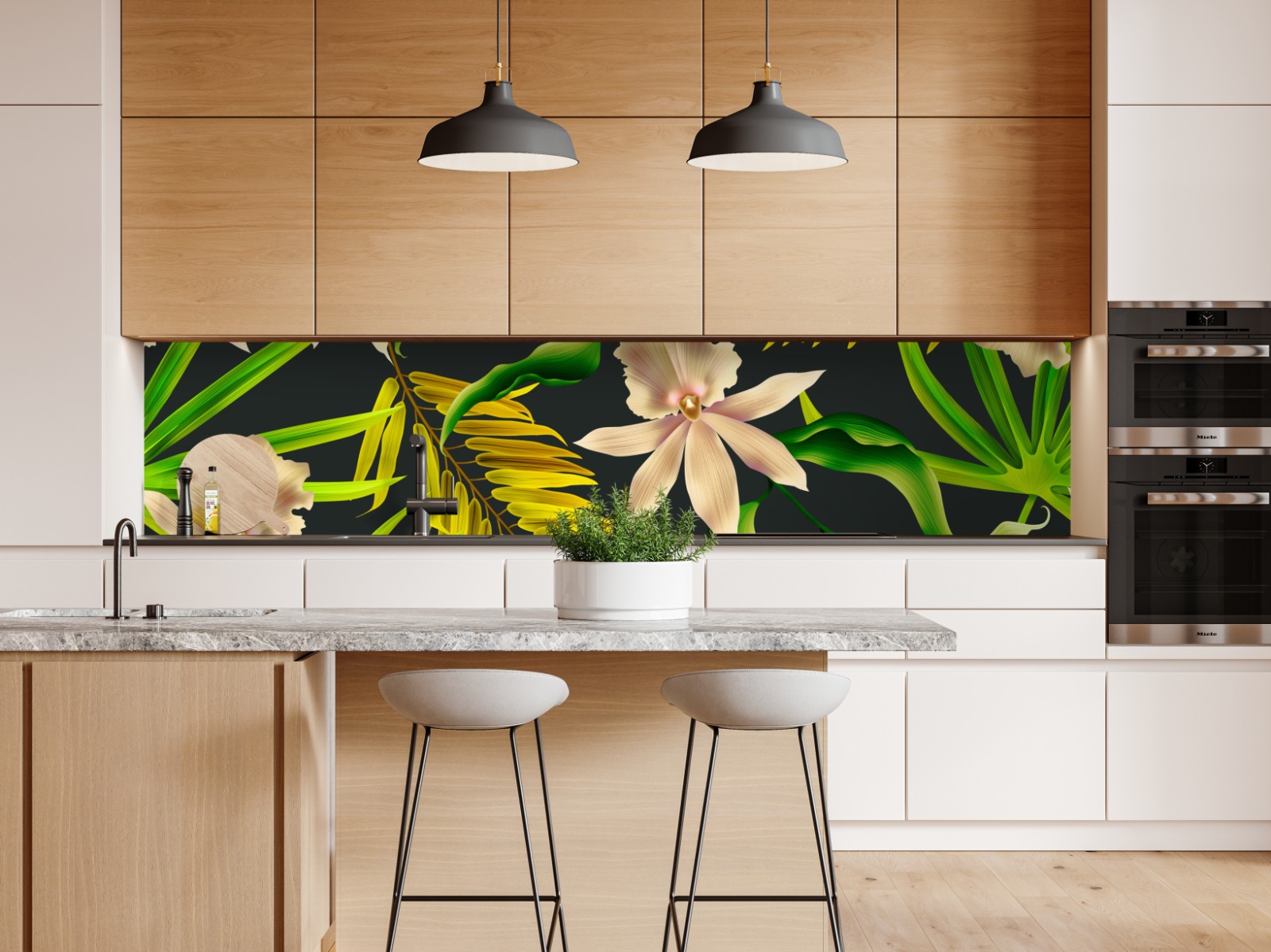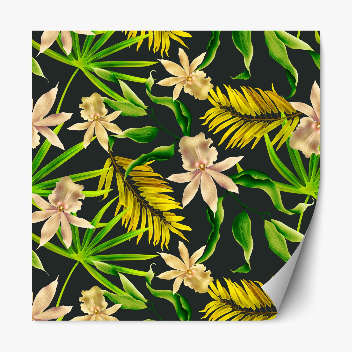 Naklejka repozycjonowalna Tropikalny wzór storczyków na ciemnym tle