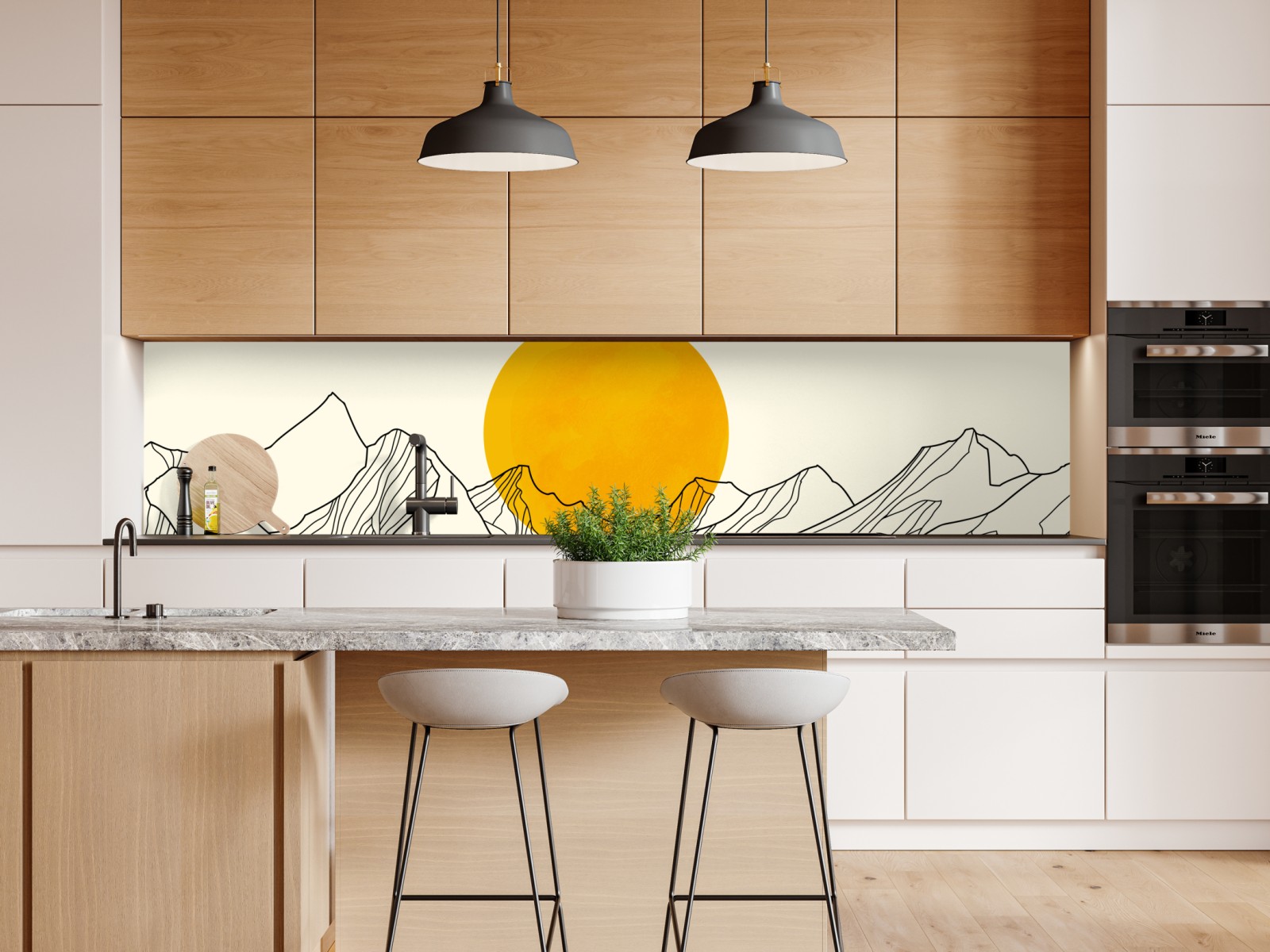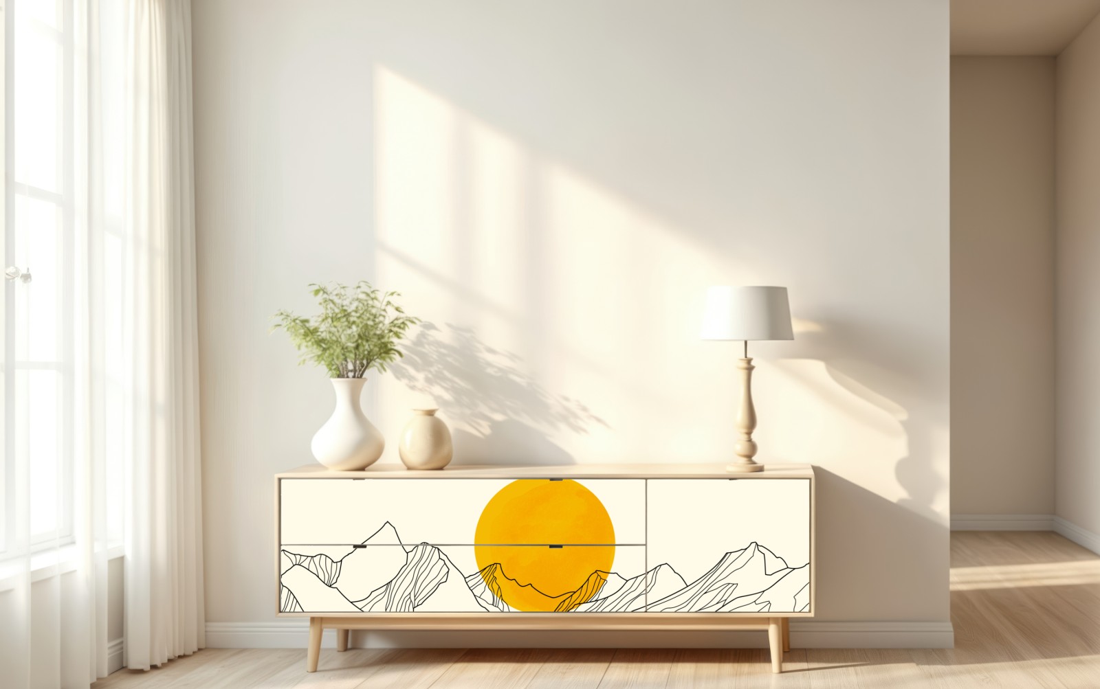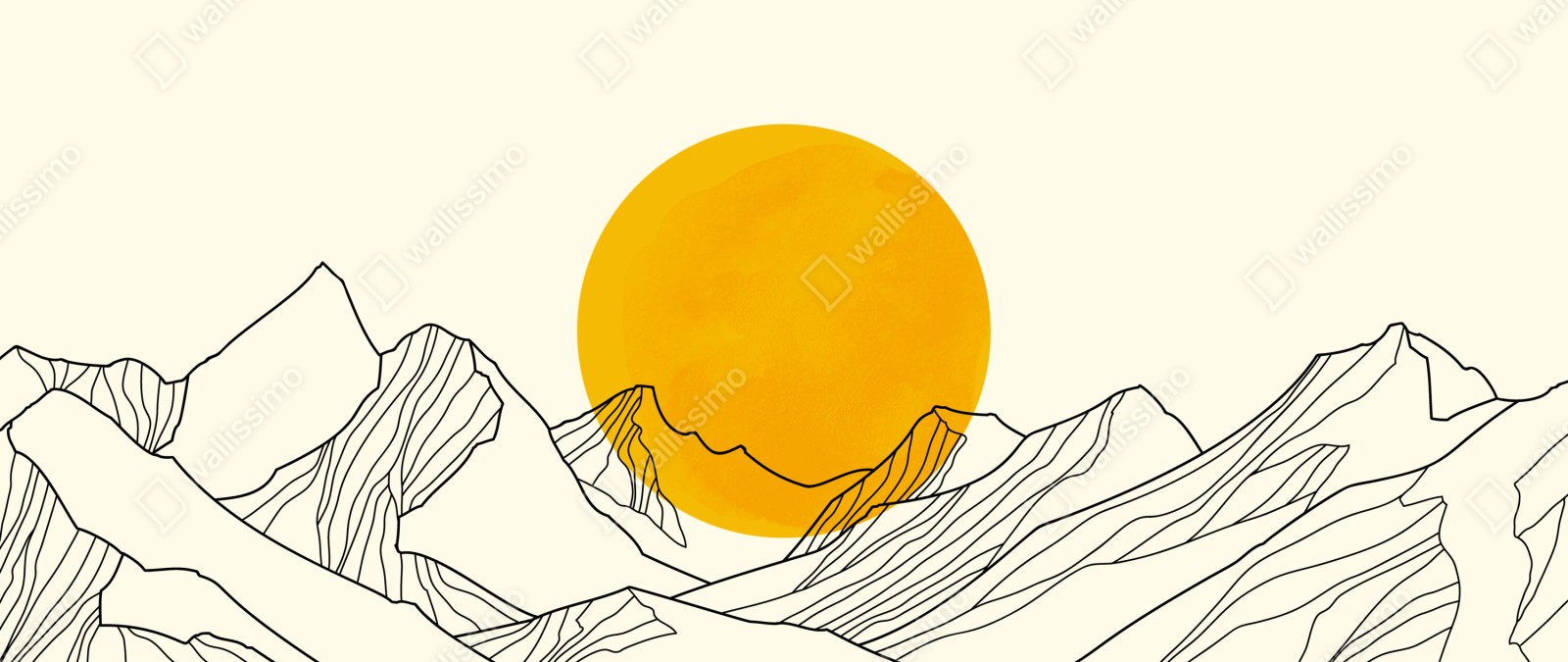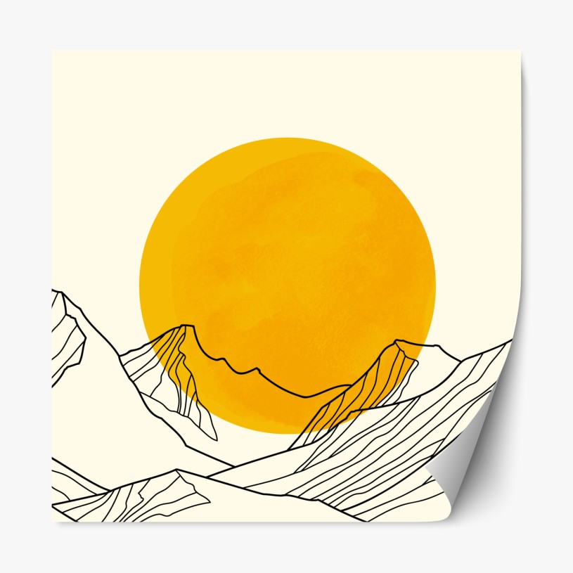 Naklejka repozycjonowalna Złote słońce nad minimalistycznymi górami