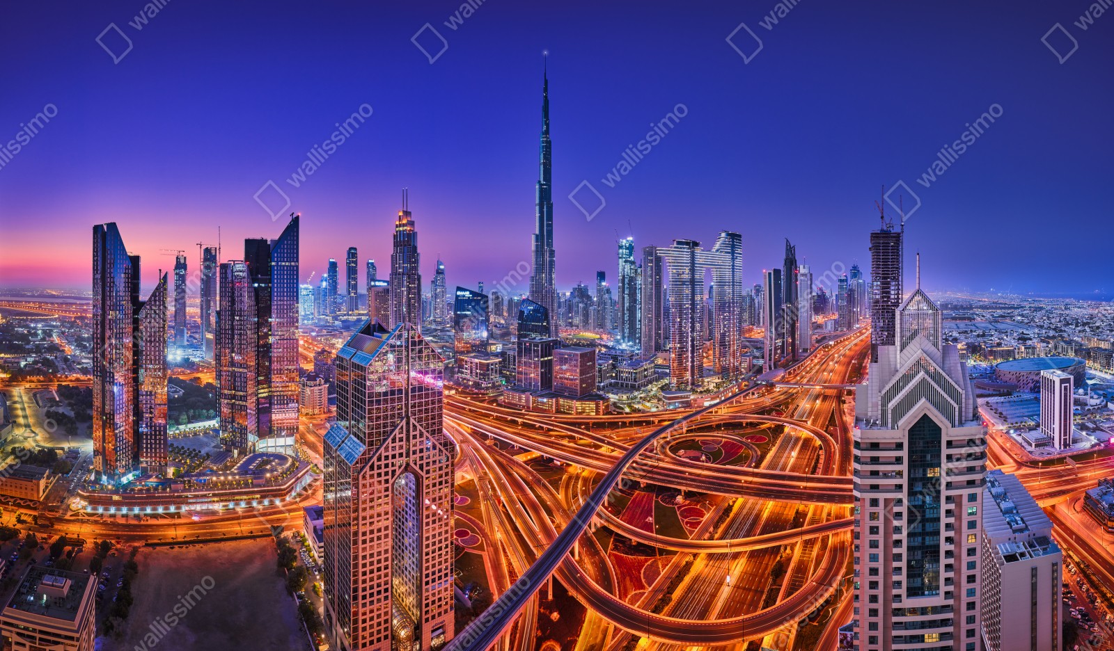 Naklejka repozycjonowalna Dubaj nocą: panorama miejskich świateł