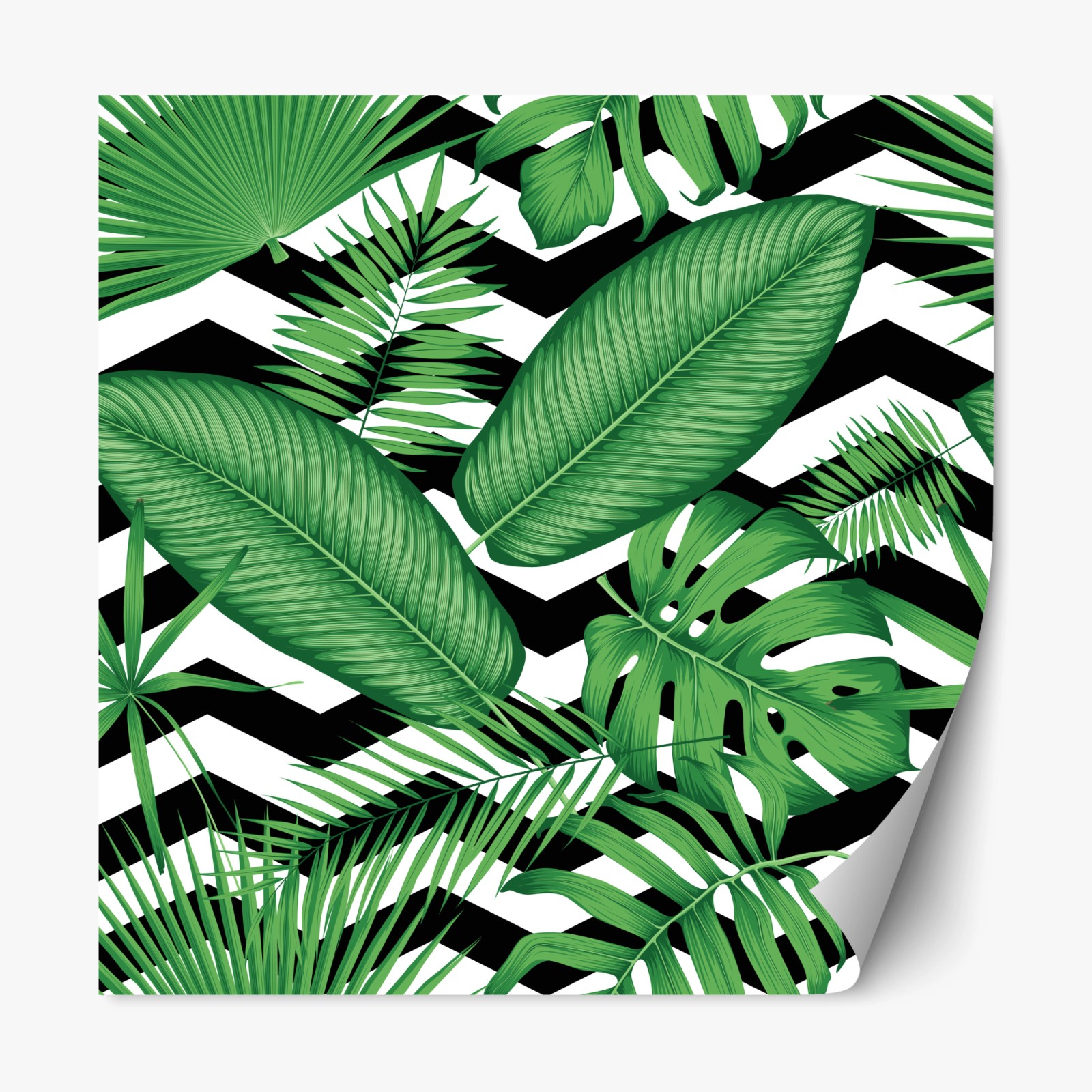 Naklejka repozycjonowalna Tropikalne liście na zygzakowatym tle