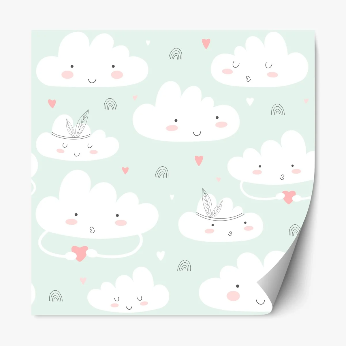 Naklejka repozycjonowalna Uśmiechnięte chmurki pastelowy wzór