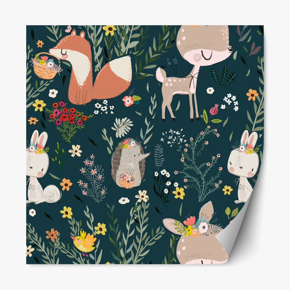Naklejka repozycjonowalna Leśni przyjaciele - kwiatowy wzór do pokoju dziecięcego