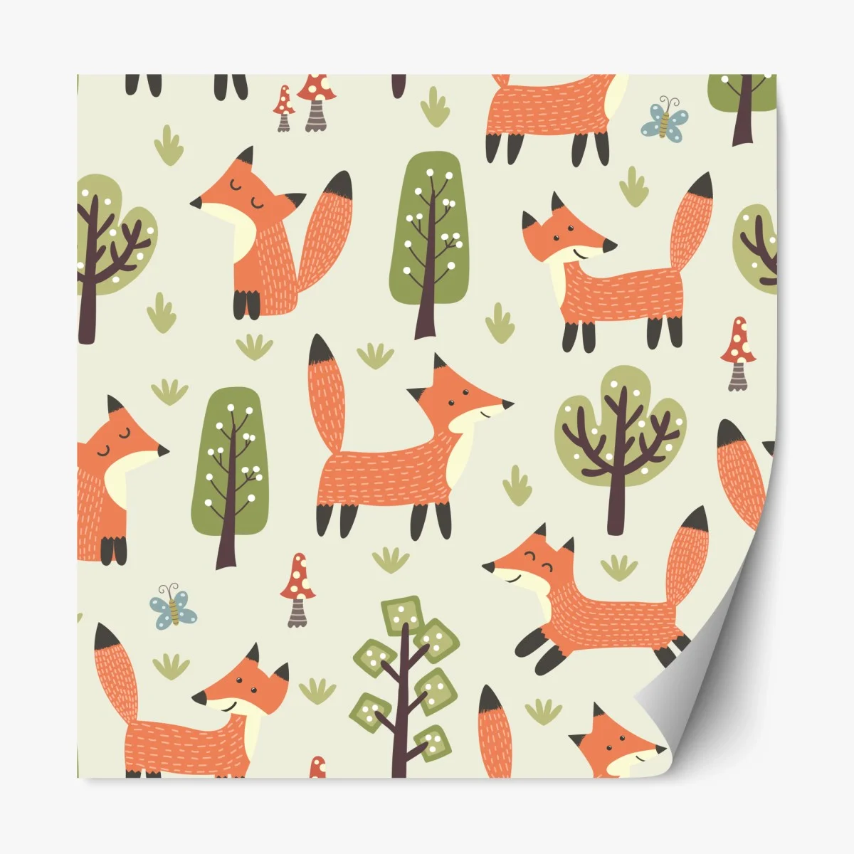 Naklejka repozycjonowalna Wesoły leśny wzór z lisami