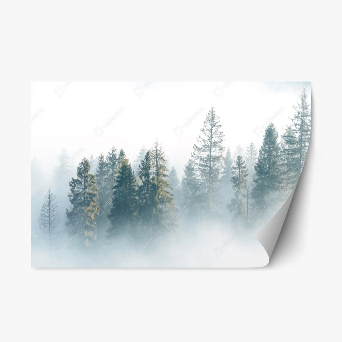 Naklejka repozycjonowalna Mglisty las świerków o poranku