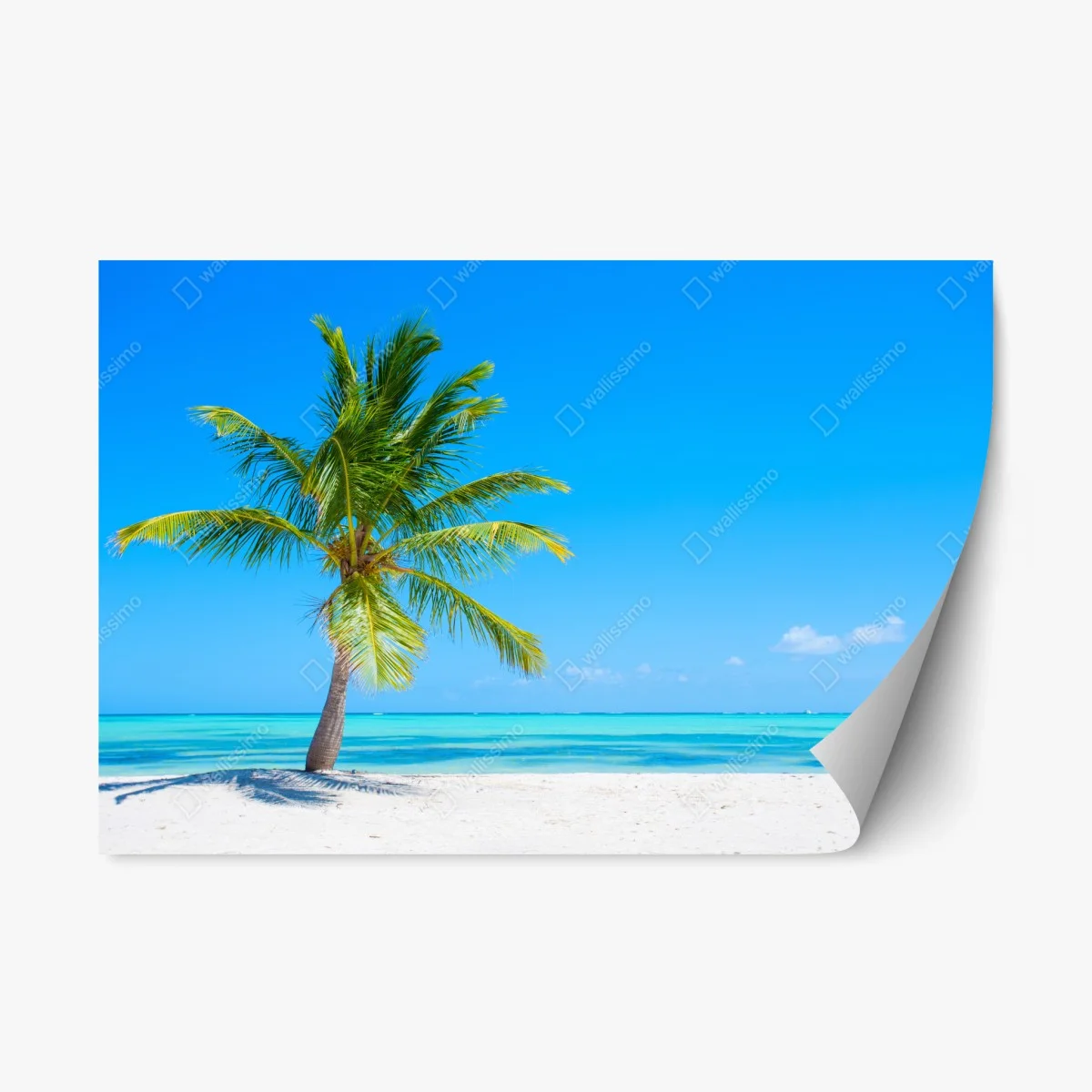 Naklejka repozycjonowalna Tropikalna palma na białej plaży