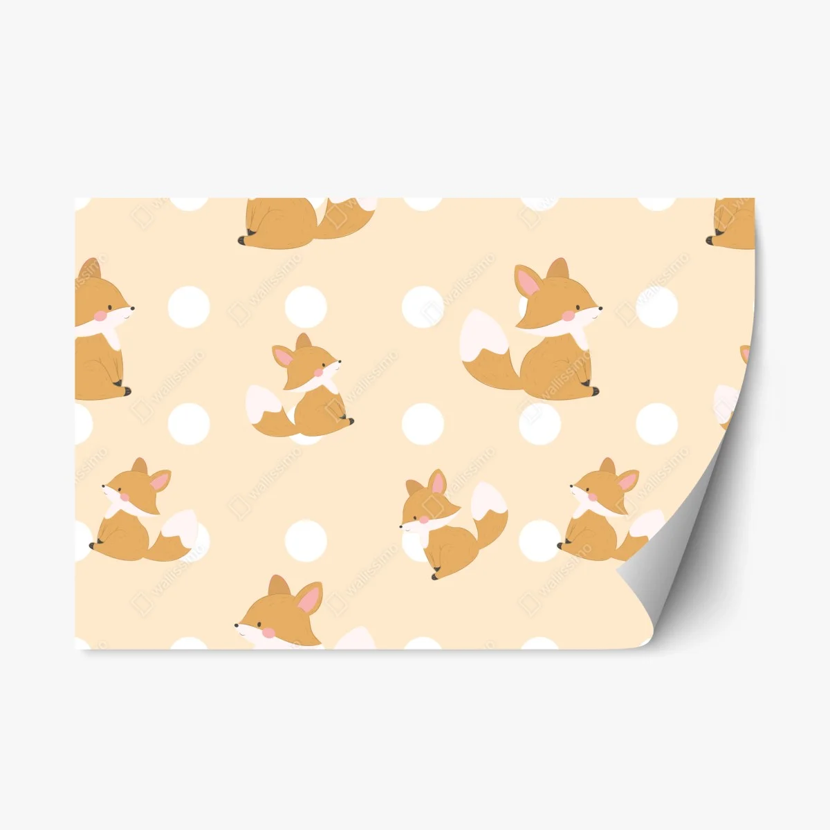 - ilustracja, pokój dziecięcy, uroczy, bezszwowy, pastelowy, lis, kropki, wzór dziecięcy, lisy, wzór na ścianę