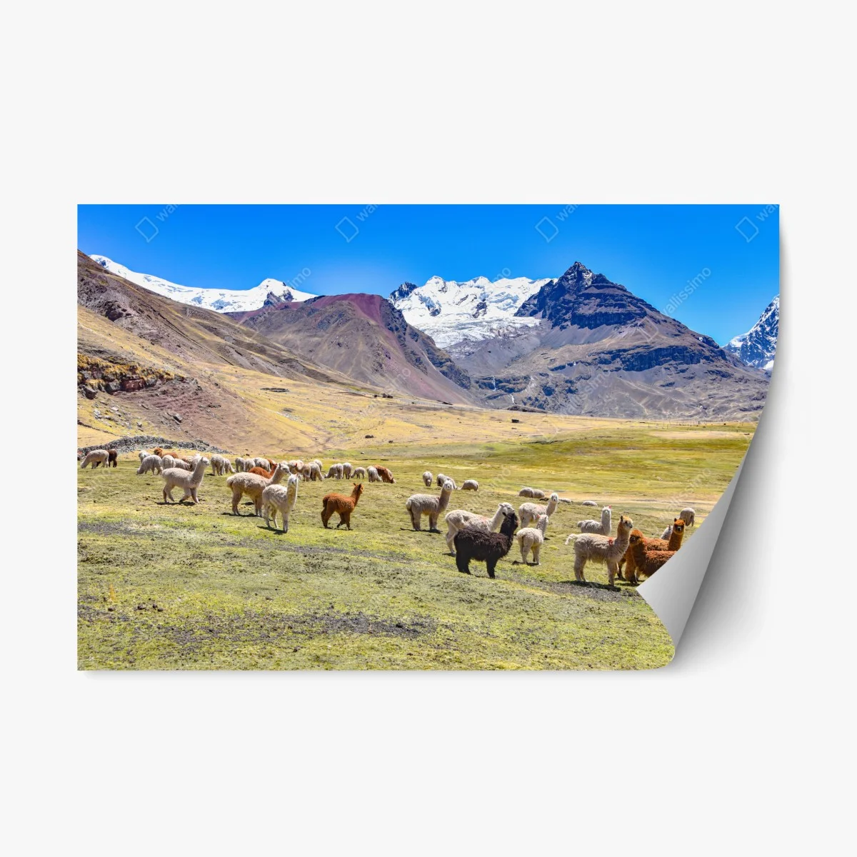 Naklejka repozycjonowalna Alpaki i lamy pasące się przy Mt Ausangate, Cusco