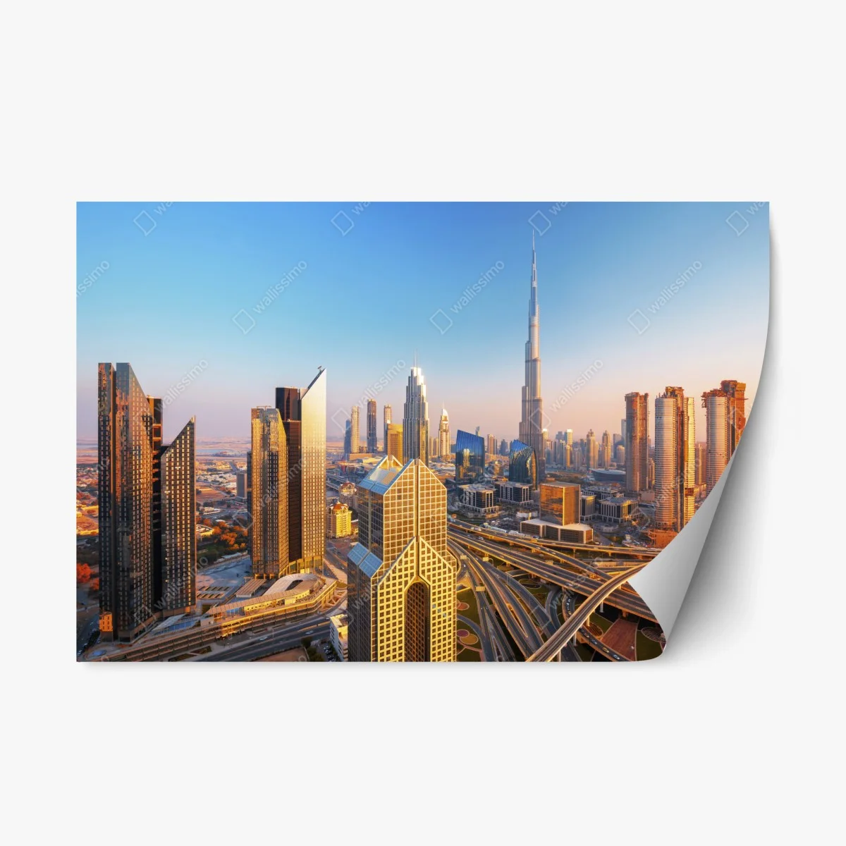 Naklejka repozycjonowalna Panorama Dubaju z Burj Khalifa o zachodzie słońca