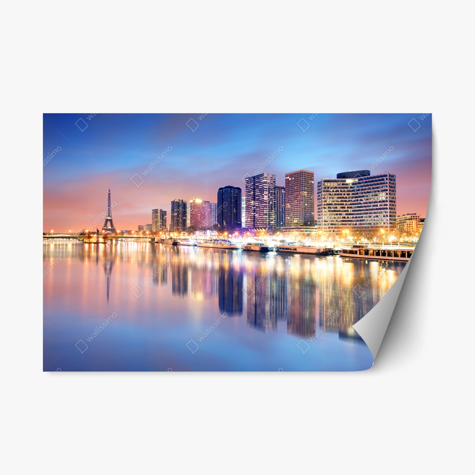 - podróże, panorama miasta, zachód słońca, rzeka, sylwetka miasta, światła miasta, odbicia, wieża eiffla, paryż, nowoczesne budynki