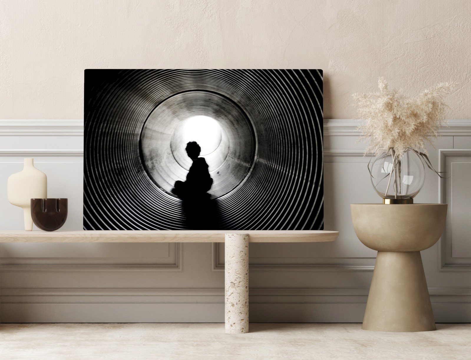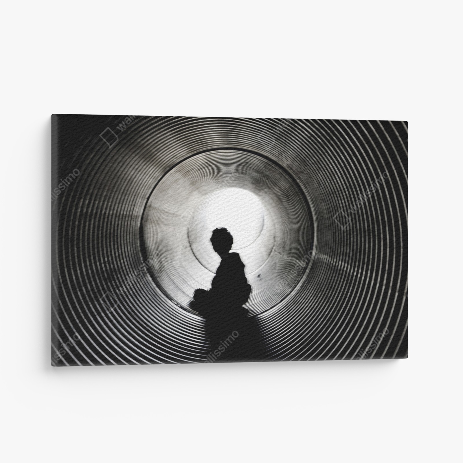 Obraz na płótnie Sylwetka w spiralnym tunelu