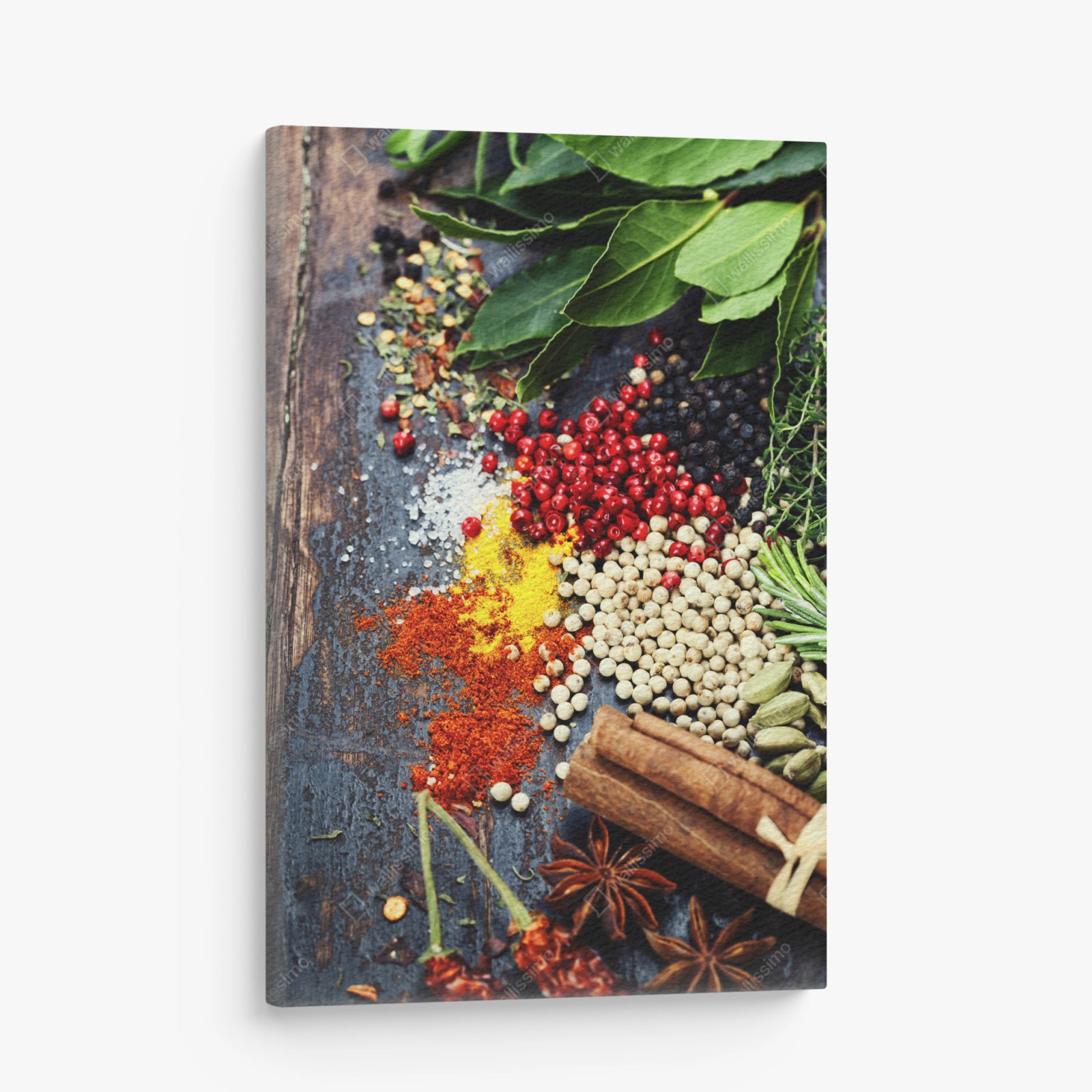 Obraz na płótnie Intensywny zestaw przypraw na rustykalnym drewnie