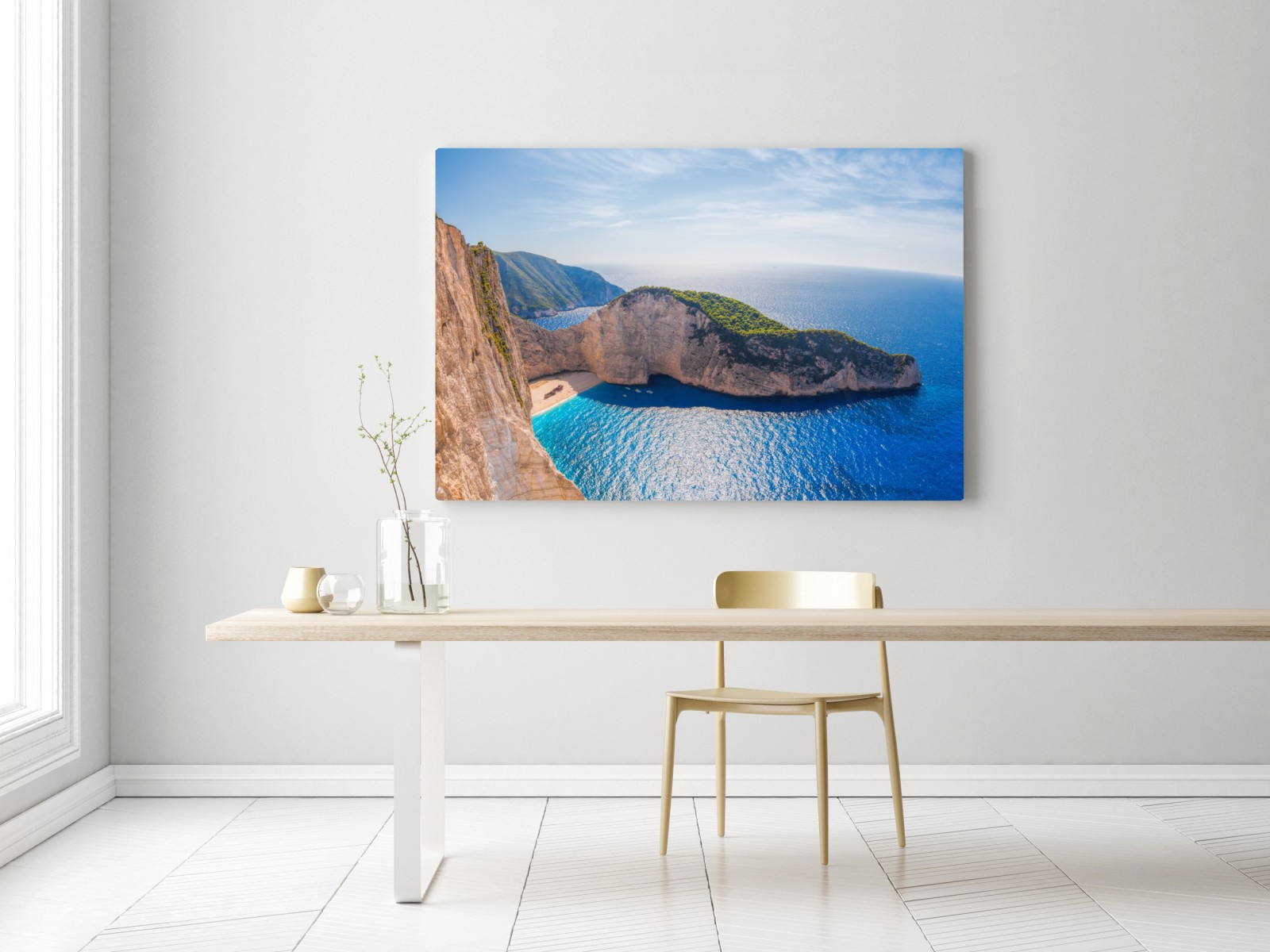 Wprowadź do wnętrza zapierające dech w piersiach klify i turkusowe wody plaży Navagio, które dodają pomieszczeniu nadmorskiego spokoju i inspiracji podróżniczej.WięcejMniej