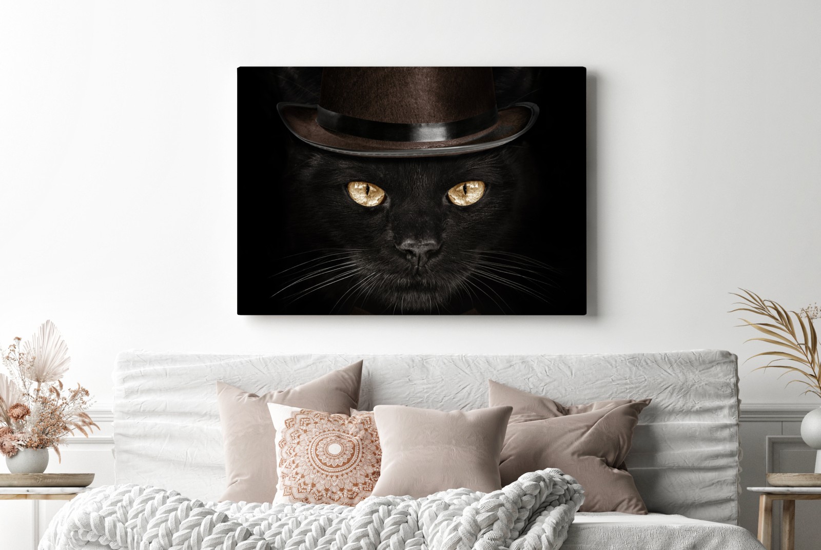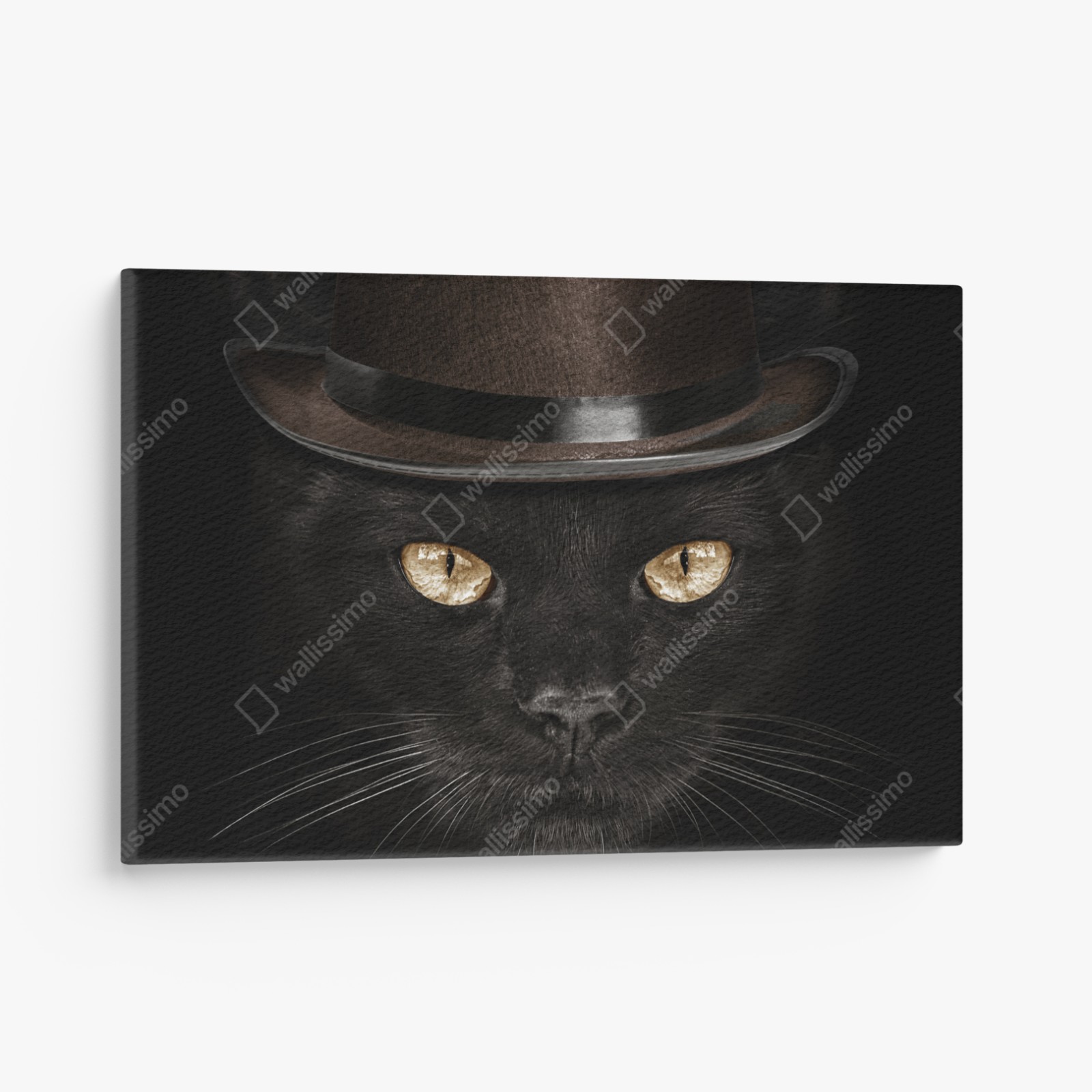 Obraz na płótnie Elegancki czarny kot w cylindrze i muszce