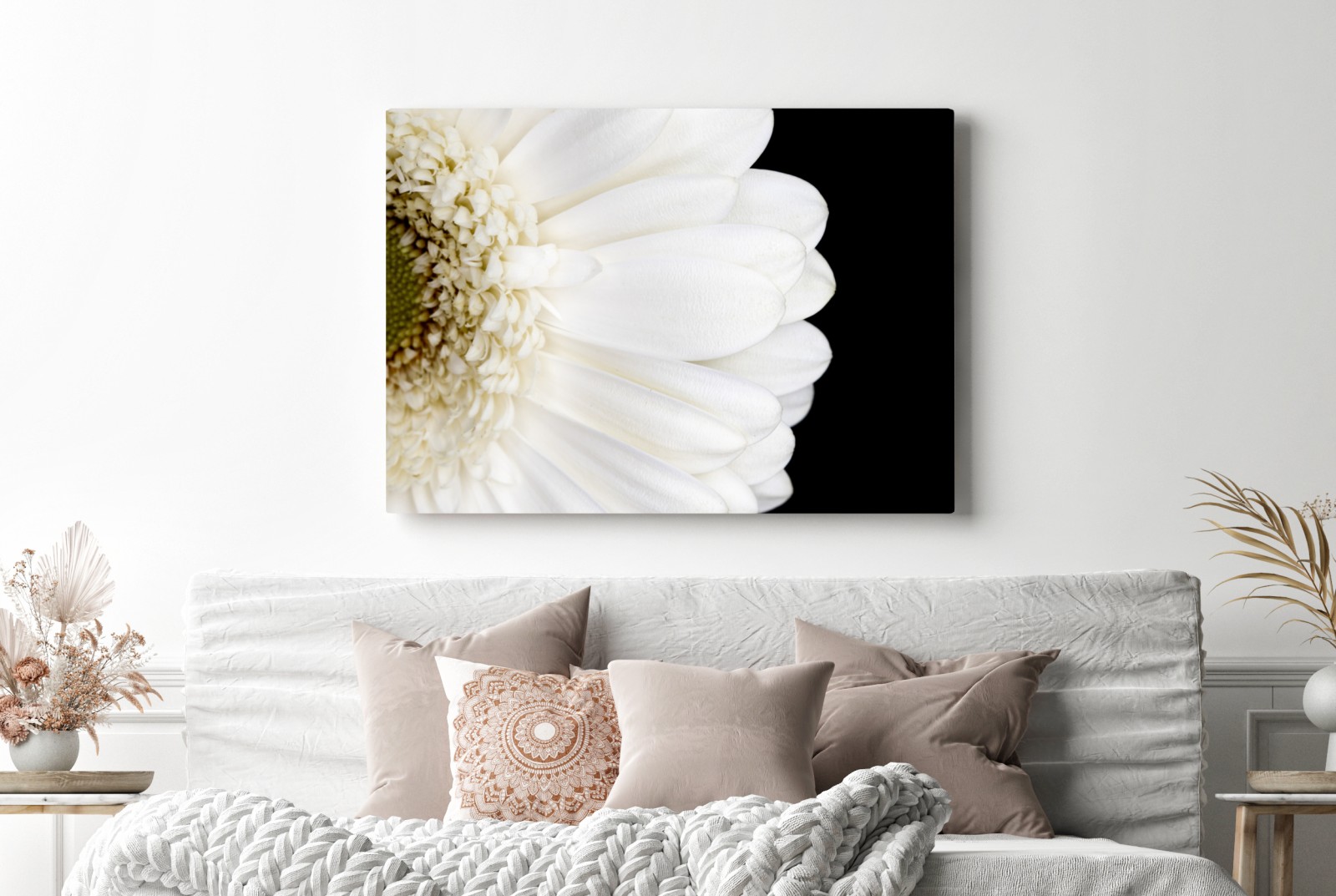 Obraz na płótnie Biała gerbera na czarnym tle minimalistyczne zbliżenie