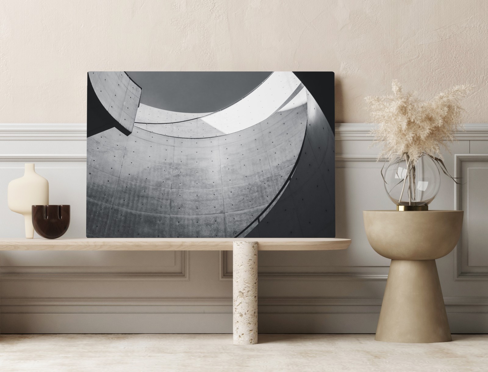 Odkryj elegancką geometrię zakrzywionego betonu w tym minimalistycznym obrazie, który doda nowoczesnej elegancji każdemu wnętrzu.WięcejMniej