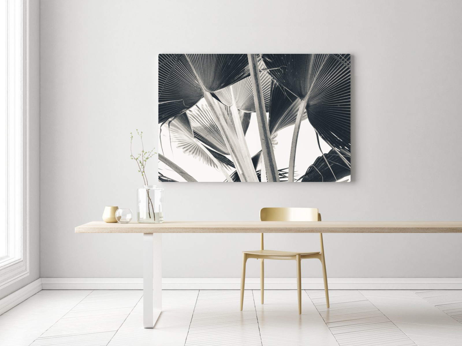 Wprowadź tropikalną atmosferę i naturalną teksturę do wnętrza dzięki tej uderzającej monochromatycznej kompozycji liści bananowca, idealnej do nowoczesnych aranżacji.WięcejMniej