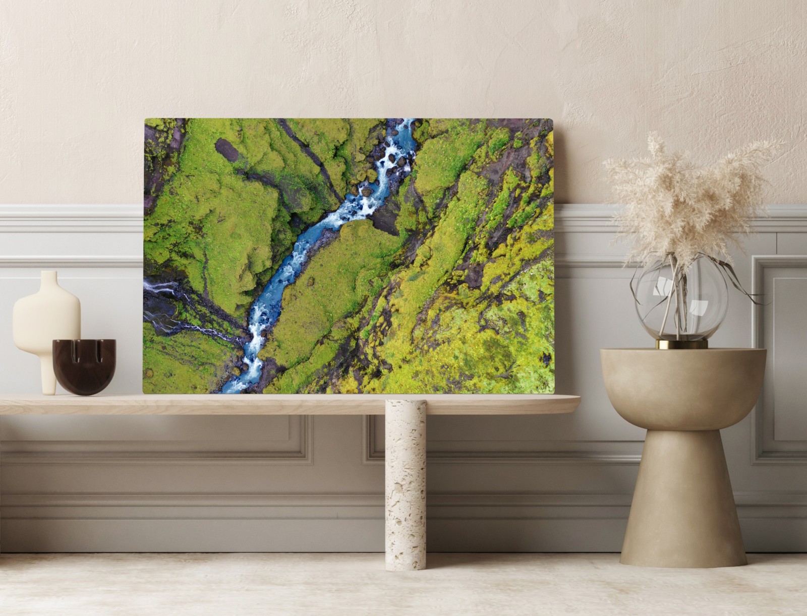 Obraz na płótnie Rzeka z lotu ptaka w mchem porośniętym wąwozie
