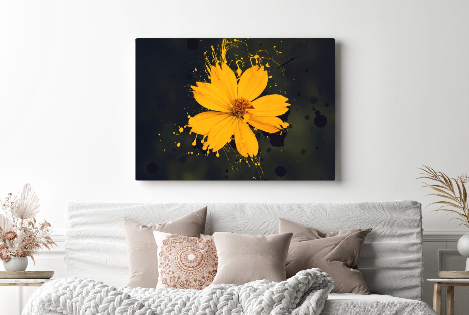 Obraz na płótnie Intensywny żółty kwiat na ciemnym tle