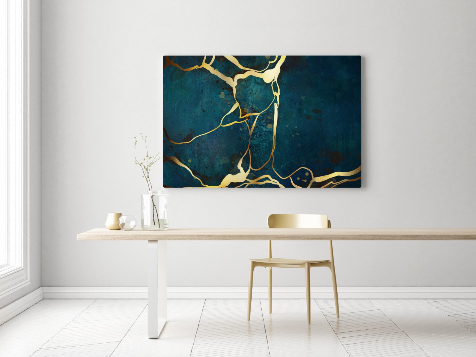 Obraz na płótnie Turkusowo-złota abstrakcja ze złotymi żyłami