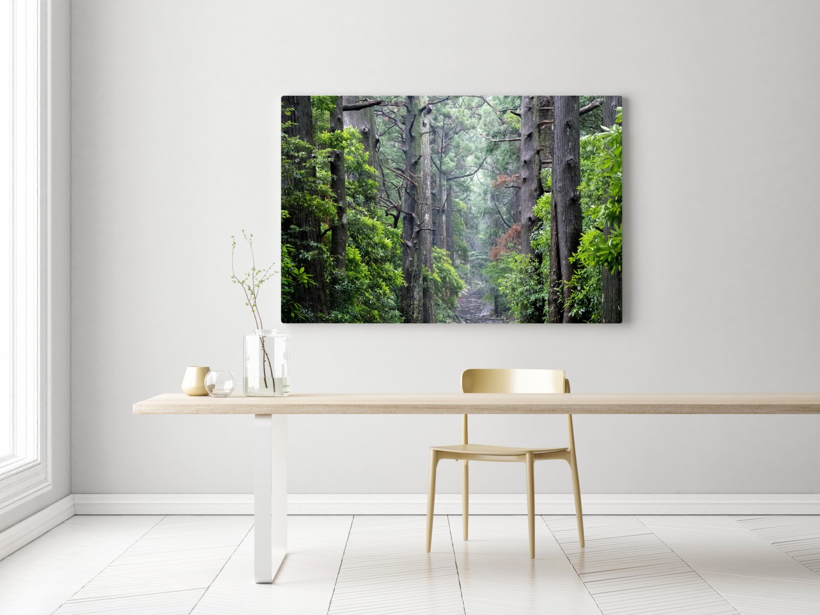 Wprowadź spokój i naturalne piękno do wnętrza dzięki tej mglistej ścieżce leśnej wijącej się między starymi drzewami, tworząc relaksującą atmosferę.WięcejMniej