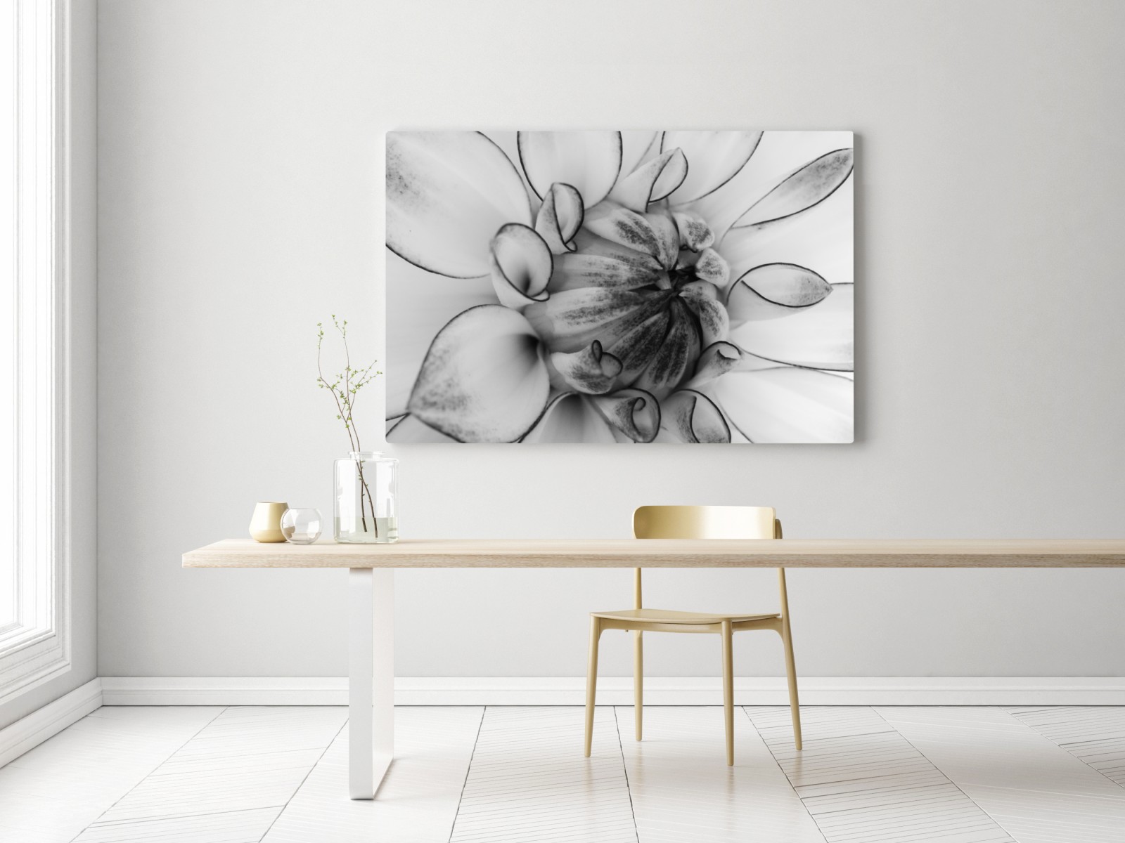 Dodaj elegancji do wnętrza dzięki temu monochromatycznemu zbliżeniu dalii, idealnemu do nowoczesnych i minimalistycznych aranżacji.WięcejMniej