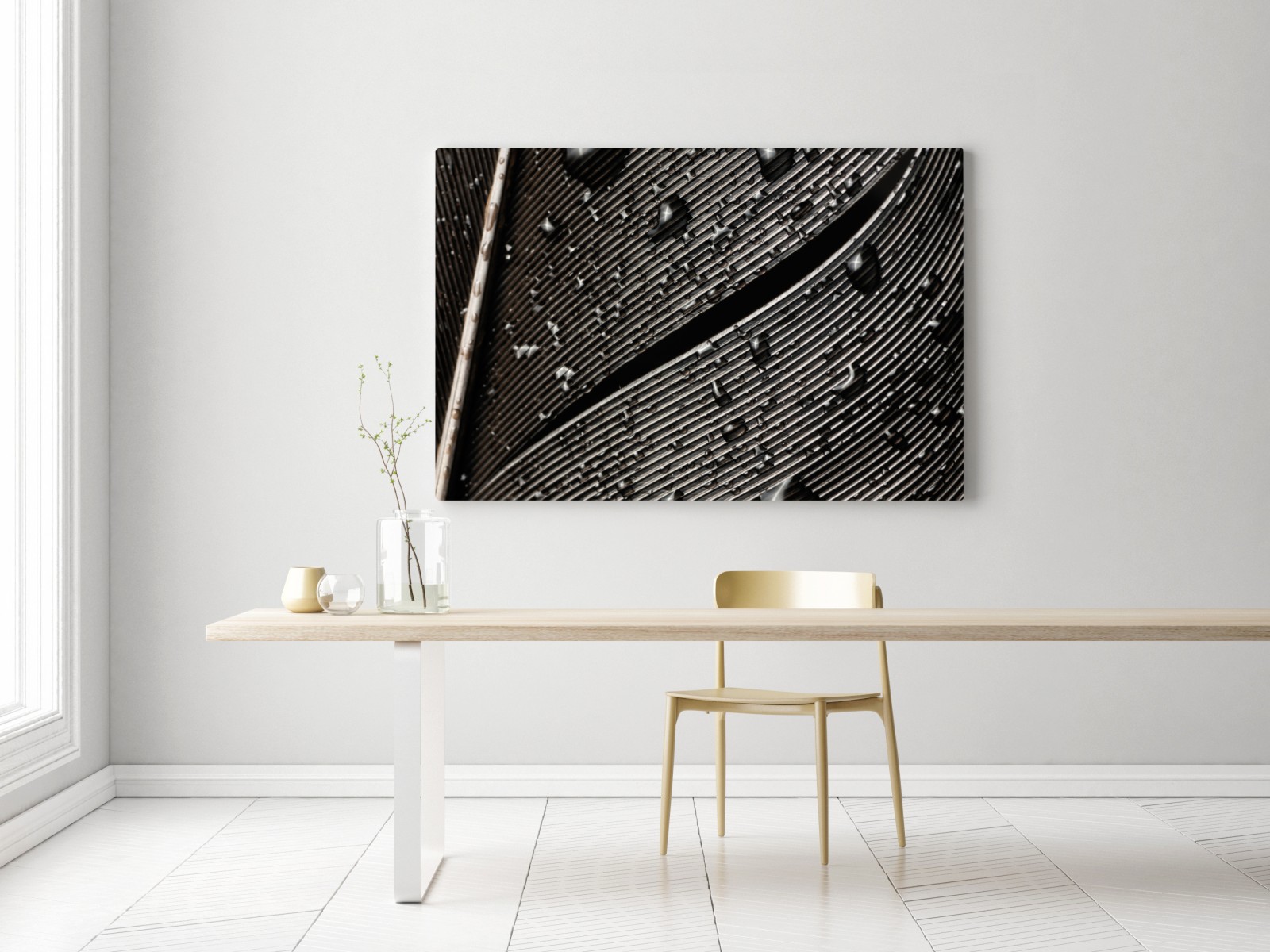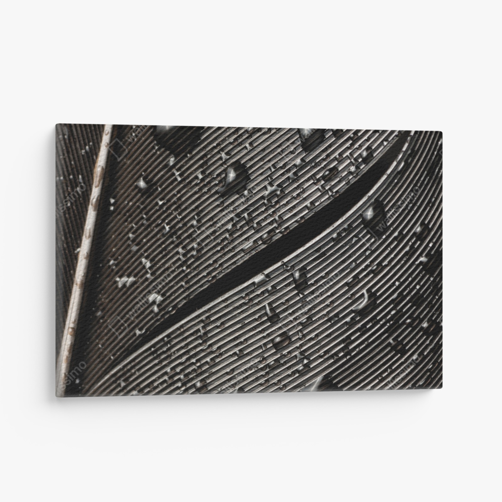 Obraz na płótnie Czarno-białe pióro z kroplami wody