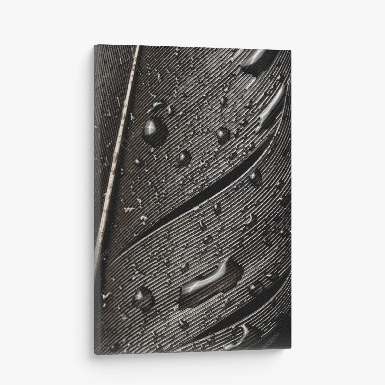 Obraz na płótnie Czarno-białe pióro z kroplami wody